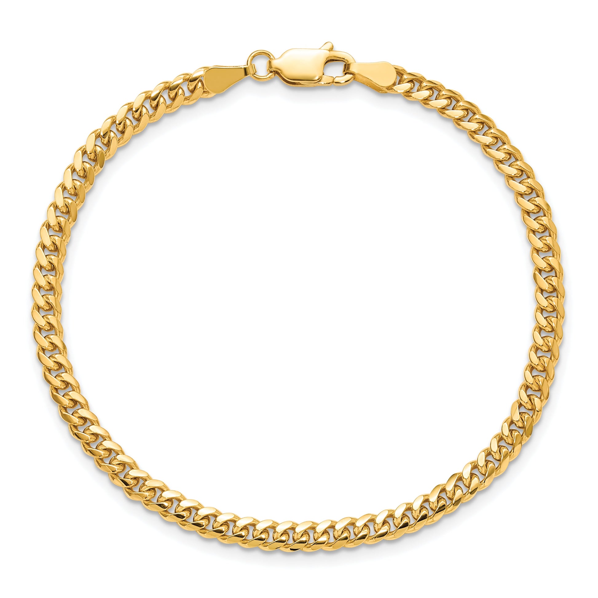 Introducing the exquisite 14K Yellow Gold 8 Inch 3.5mm Solid Miami Cuban Link Bracelet. Crafted with polished, pure gold, this bracelet exudes luxury and sophistication. Its striking curb chain design, at 3.5mm wide, offers durability and timeless style. The 8-inch length fits comfortably, secured by a sturdy lobster clasp for added safety. Versatile in its appeal, this unisex piece is perfect for any occasion, whether casual or formal. Elevate your jewelry collection with the elegance of the 14K Yellow Gold Miami Cuban Link Bracelet.