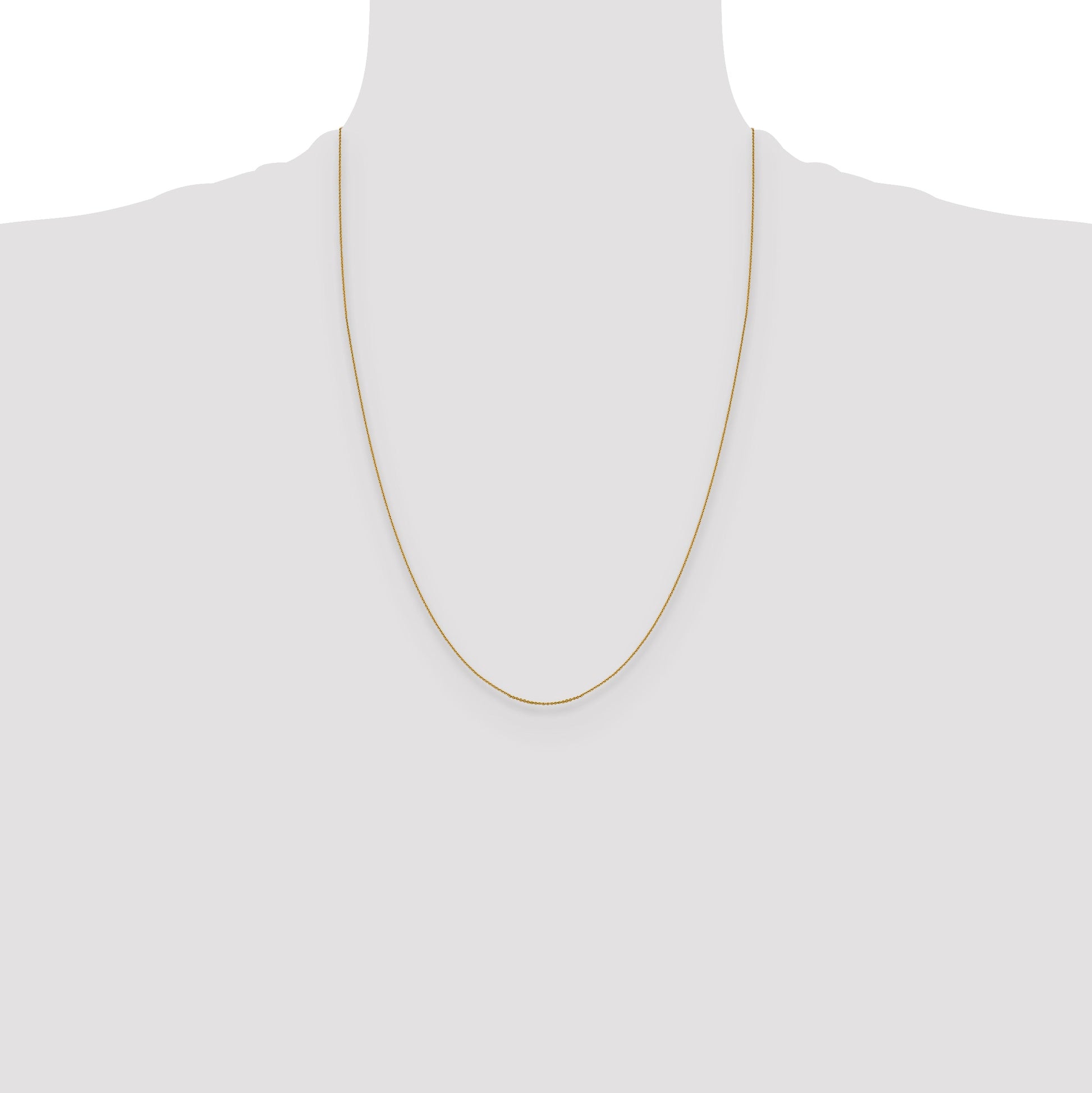 The 14K Yellow Gold 14K .85 mm D/C Cable Chain is a sleek and durable necklace perfect for daily wear. Made from solid 14K gold, it features a polished finish that catches the light with every move. The chain measures 24 inches long and has a comfortable lobster clasp for easy wear. Its diamond-cut texture and thin 0.85 mm width give it a modern, refined look that complements any outfit. Designed with quality in mind, the 14K Yellow Gold 14K .85 mm D/C Cable Chain comes with a lifetime guarantee, making it a smart and stylish choice for jewelry lovers.