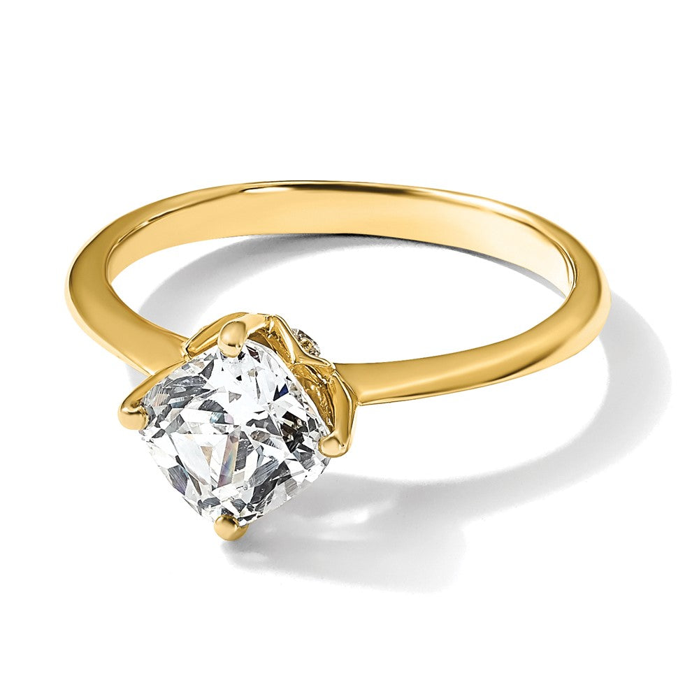 14K Yellow Gold (Holds 2 carat (7.60 mm) Cushion-cut) 4-Prong with 1/15 carat Diamond Leaf Design Semi-Mount Engagement Ring