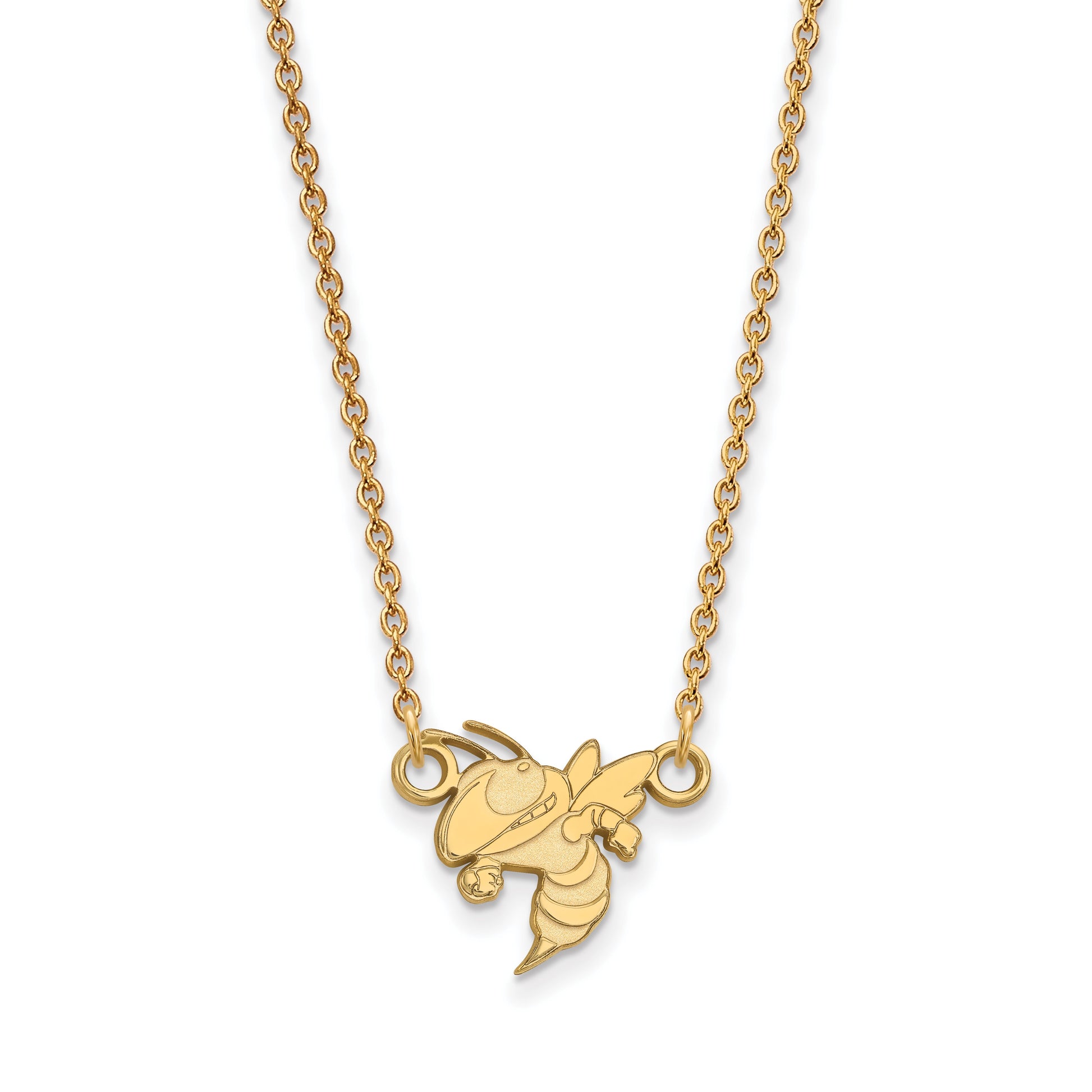 Show your school pride with the LogoArt Georgia Tech Small Pendant Necklace. Crafted from 14K yellow gold, this charm features a sleek polished finish that adds shine to any outfit. The pendant measures 12 mm by 11 mm and showcases the iconic Georgia Tech logo, making it a perfect gift for students and alumni. The 18-inch cable chain complements the small charm, ensuring a comfortable fit and stylish look. With a lobster clasp for secure wear, the necklace is created through laser cutting for durability and precision. Celebrate Georgia Tech with this classy jewelry piece, a must-have for any fan.