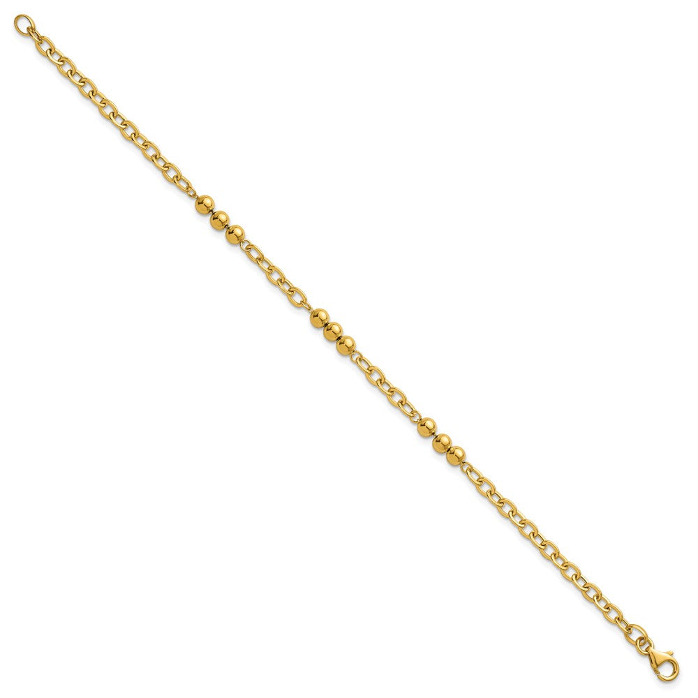 14K Yellow Gold Polished 3.5mm Fancy Beaded and Cable Link 7.5 Inch Bracelet