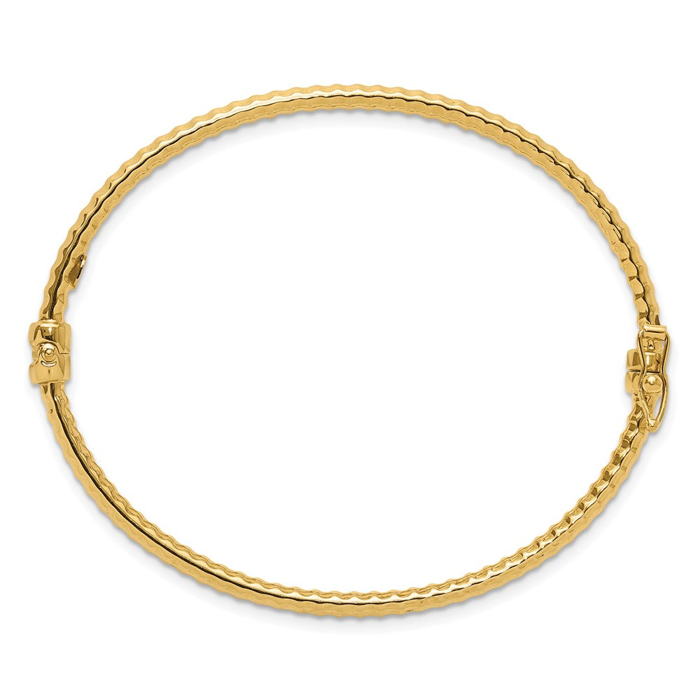14K Yellow Gold Polished and Textured 3.00mm Hinged Oval Bangle Bracelet