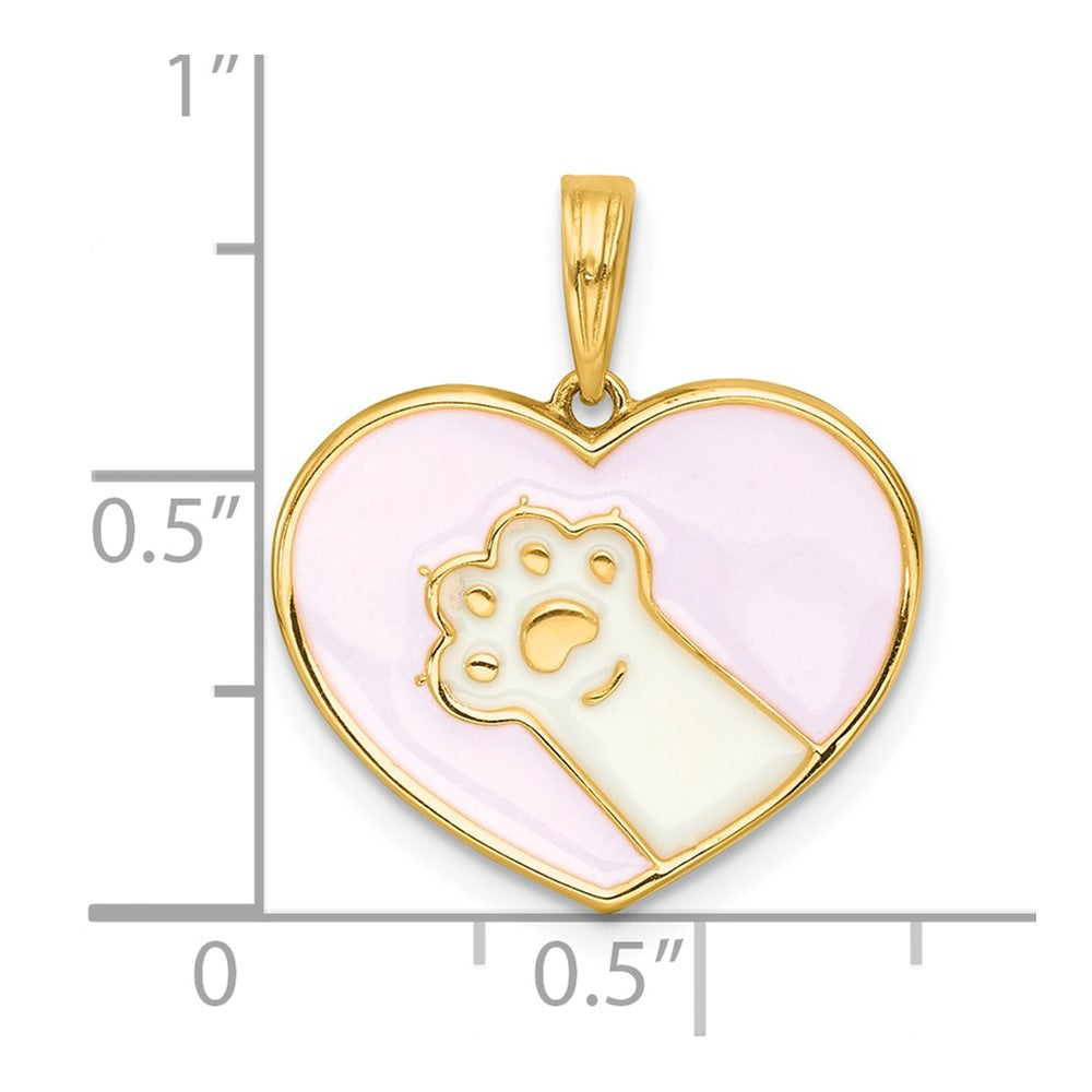 14K Yellow Gold Polished Enamel Paw In Pink Heart Charm