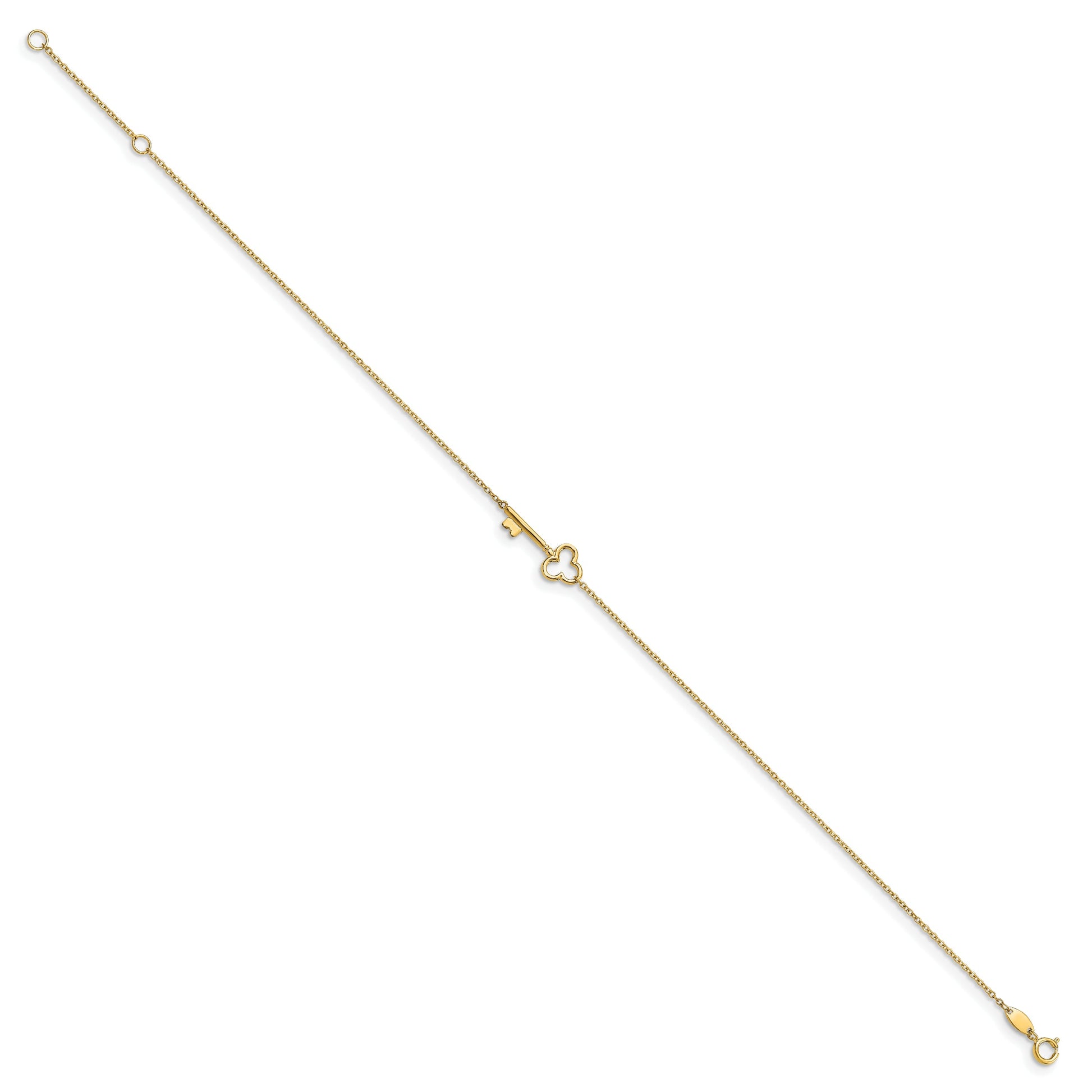 14K Yellow Gold Polished Key W/1In Ext. Anklet