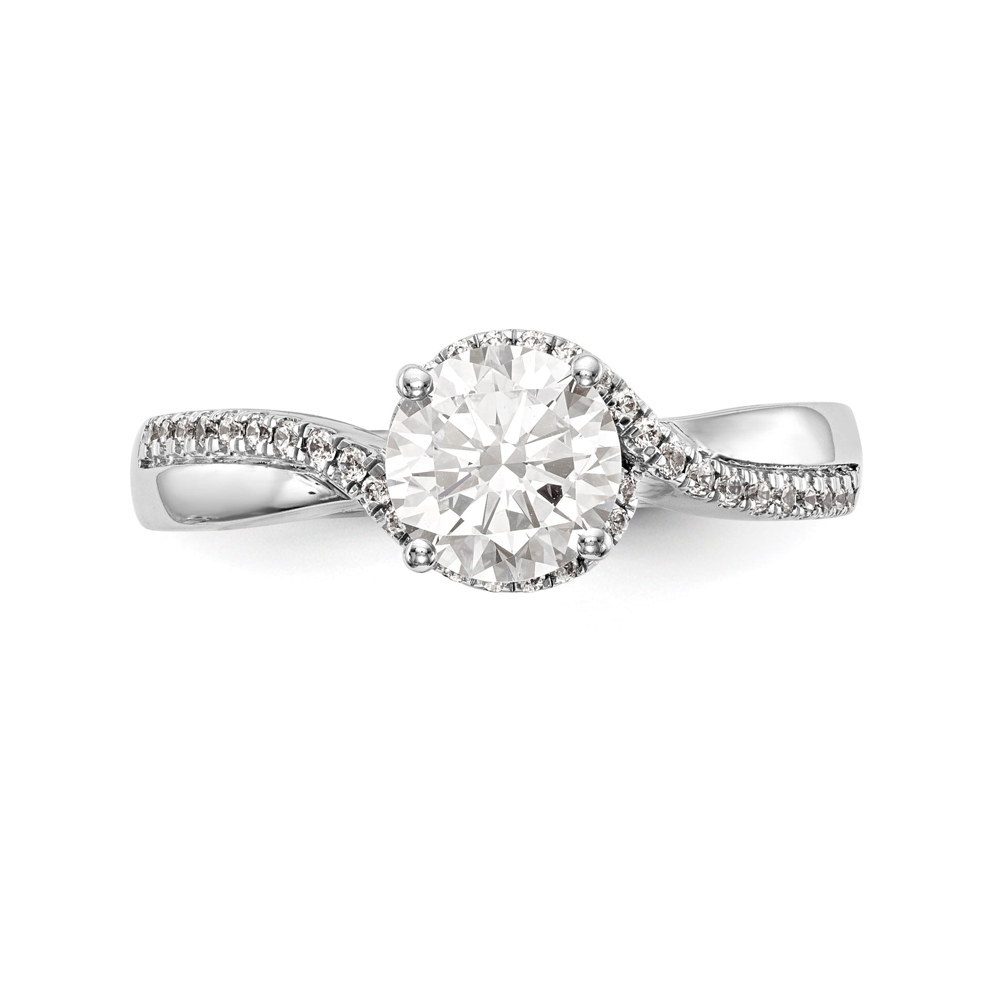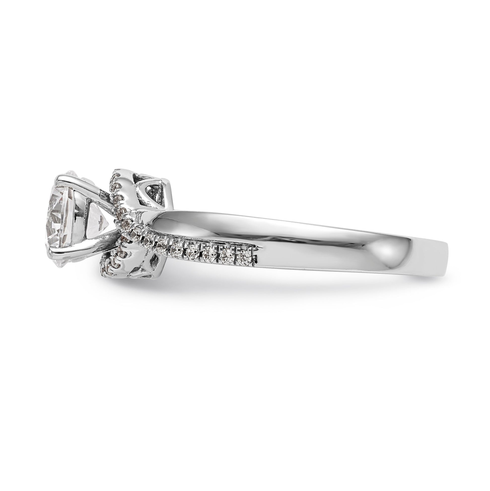 14kw Peg Set Diamond Round CZ By Pass Engagement Ring