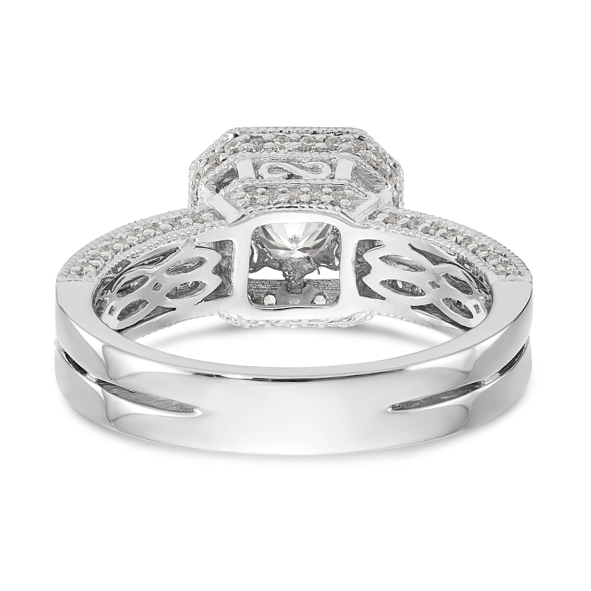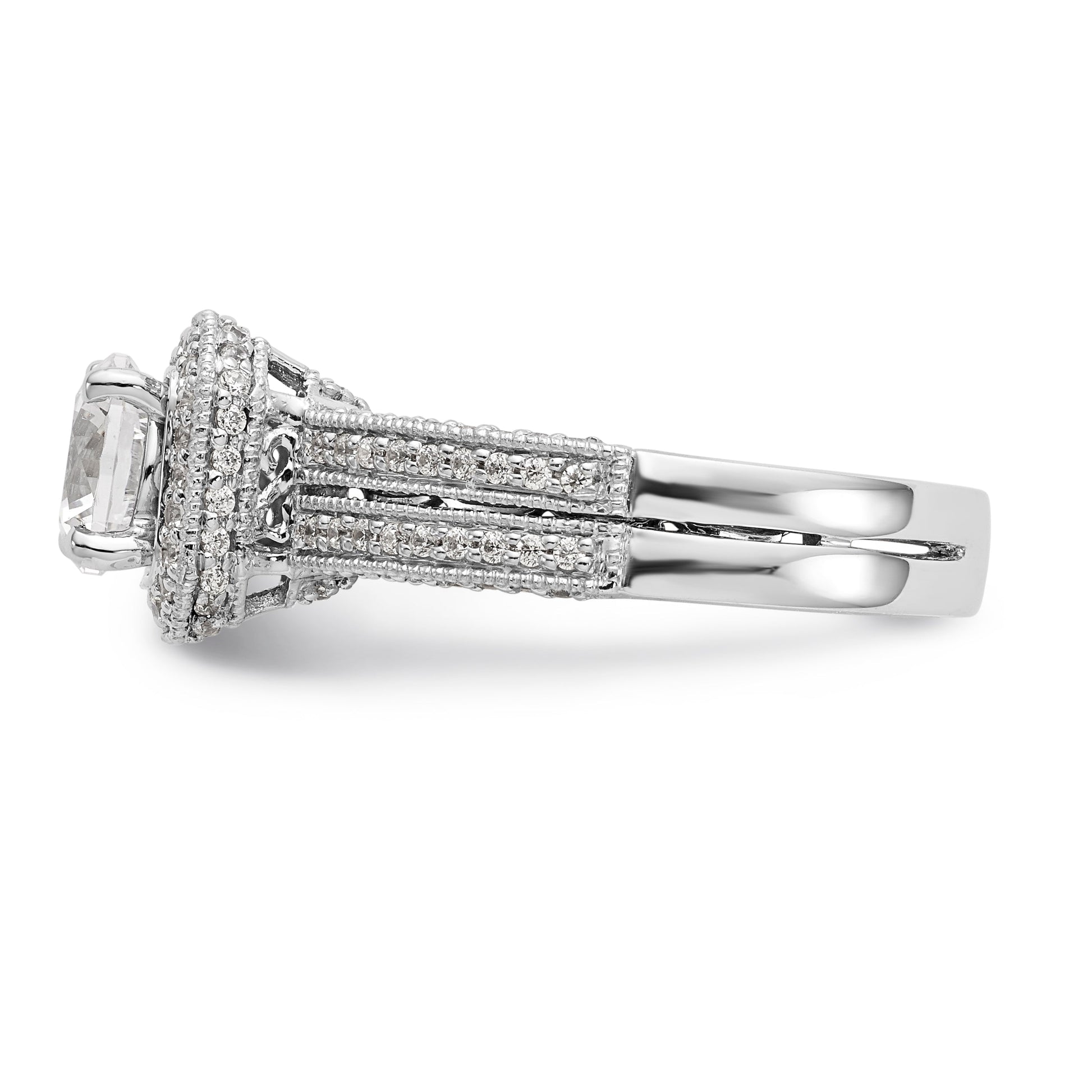 14kw Round Simulated Diamond Cushion Halo Engagement Ring