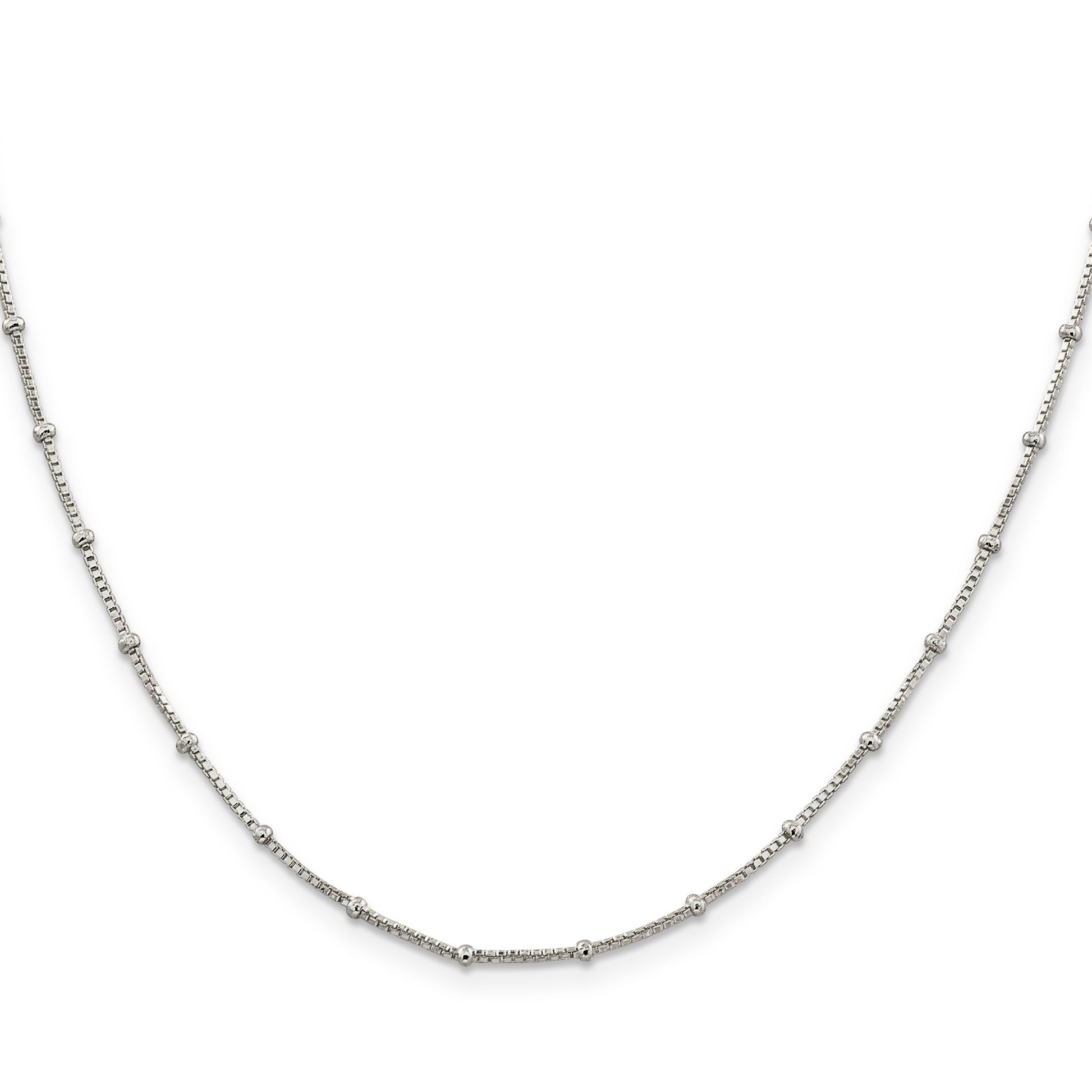 The 16-Inch Sterling Silver 1.25mm Fancy Beaded Box Chain offers a touch of elegance and simplicity to any look. Crafted from 925 sterling silver, this polished necklace adds a dainty shine and a modern feel. The chain measures 16 inches in length, making it perfect for layering or wearing solo for a minimalist vibe. The beaded ball design melds with precision, finished off with a sturdy lobster clasp for secure wear. This iconic piece suits a range of styles, promising longevity and timeless appeal. Elevate your collection with this stunning Fancy Beaded Box Chain.