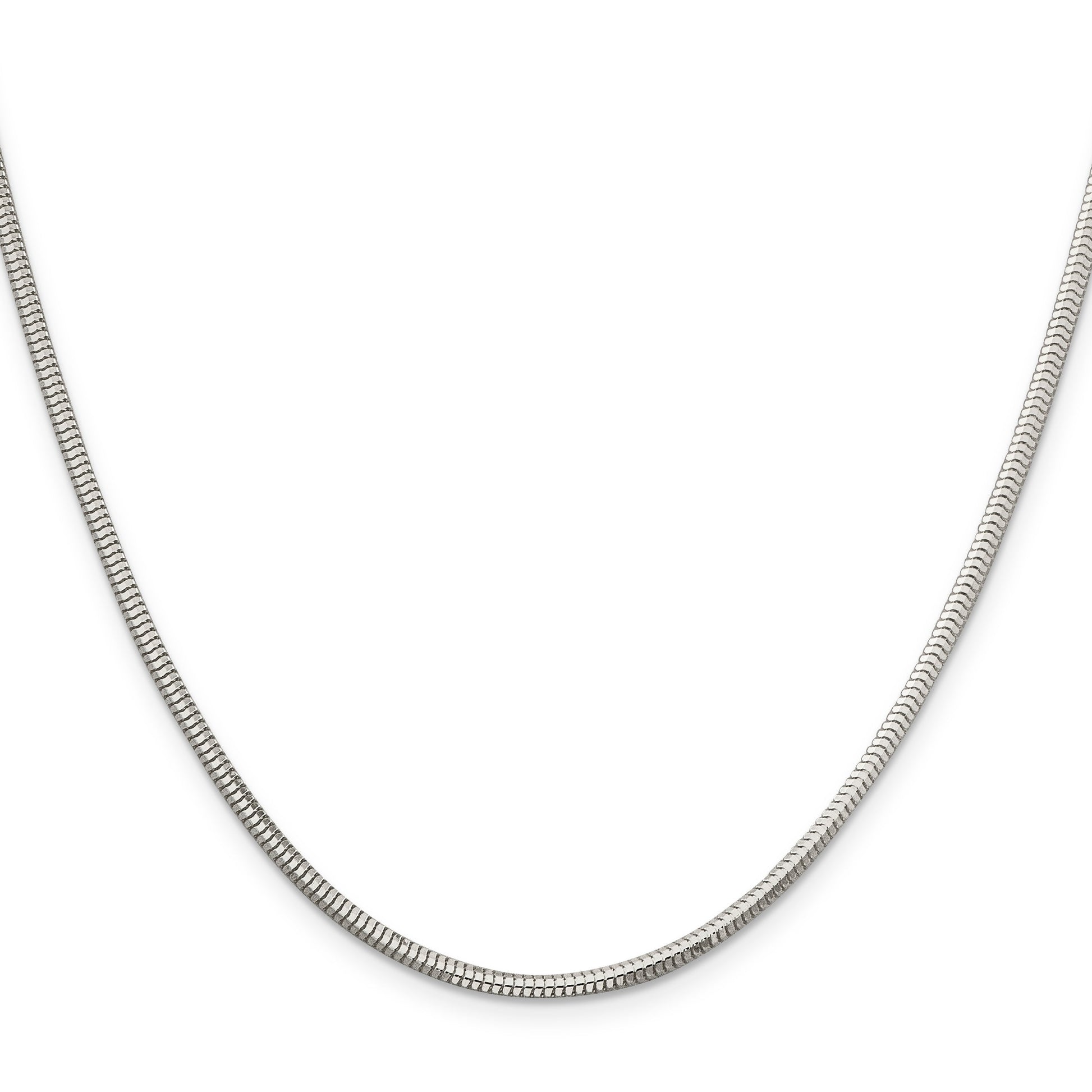 The 16 Inch Sterling Silver 2.5mm Diamond-Cut Snake Chain is a testament to timeless elegance and sophistication. Fashioned from polished 925 sterling silver, this necklace offers a brilliant shine that enhances any outfit. Its snake-style chain measures a sleek 2.5 mm in width, ensuring a comfortable wear. The diamond-cut design lends a unique texture, catching the light brilliantly. An anti-tarnish coating ensures lasting beauty, while a lobster clasp provides secure fastening. Crafted with precision, this machine-made piece combines durability with style. Elevate your jewelry collection with the 16 Inch Sterling Silver 2.5mm Diamond-Cut Snake Chain.