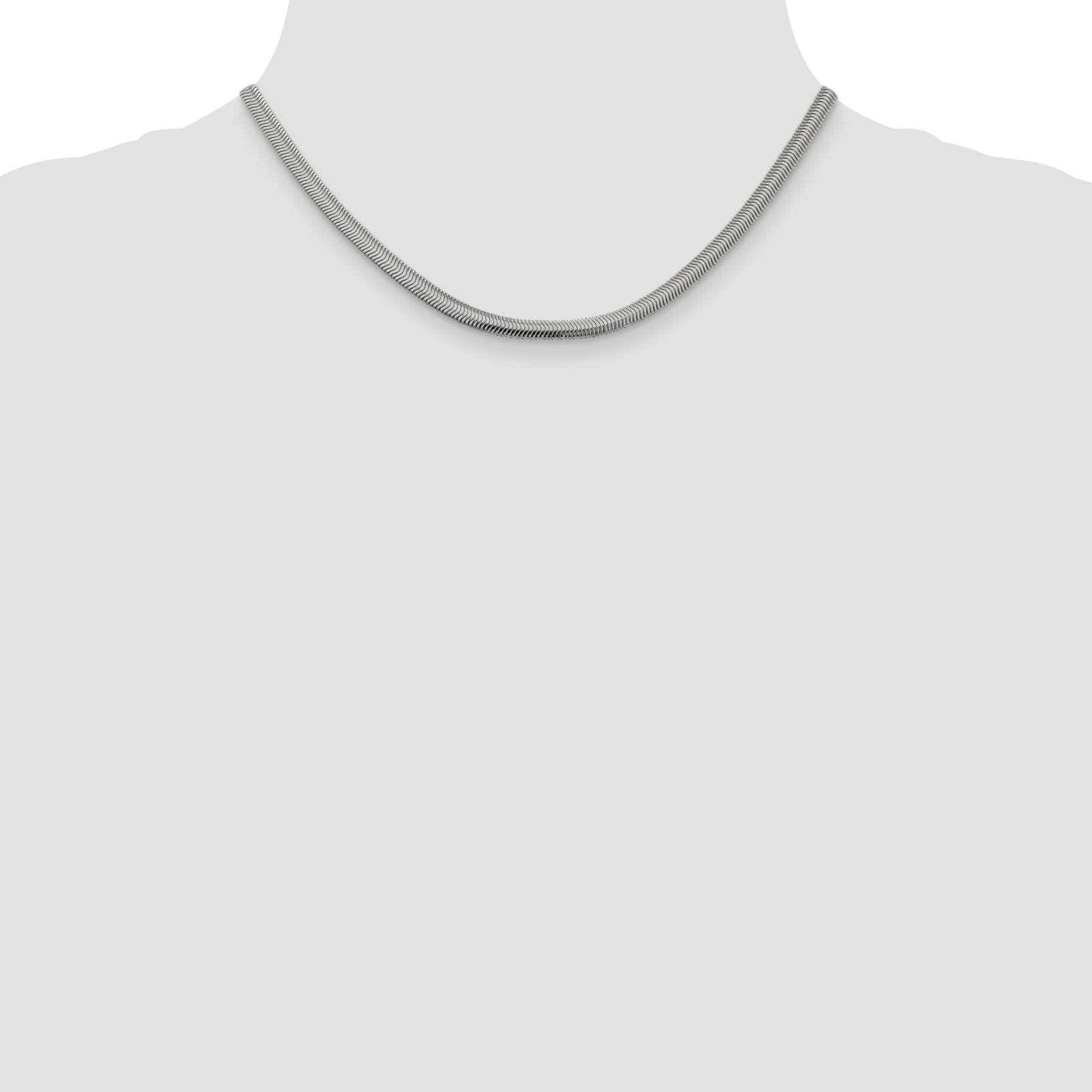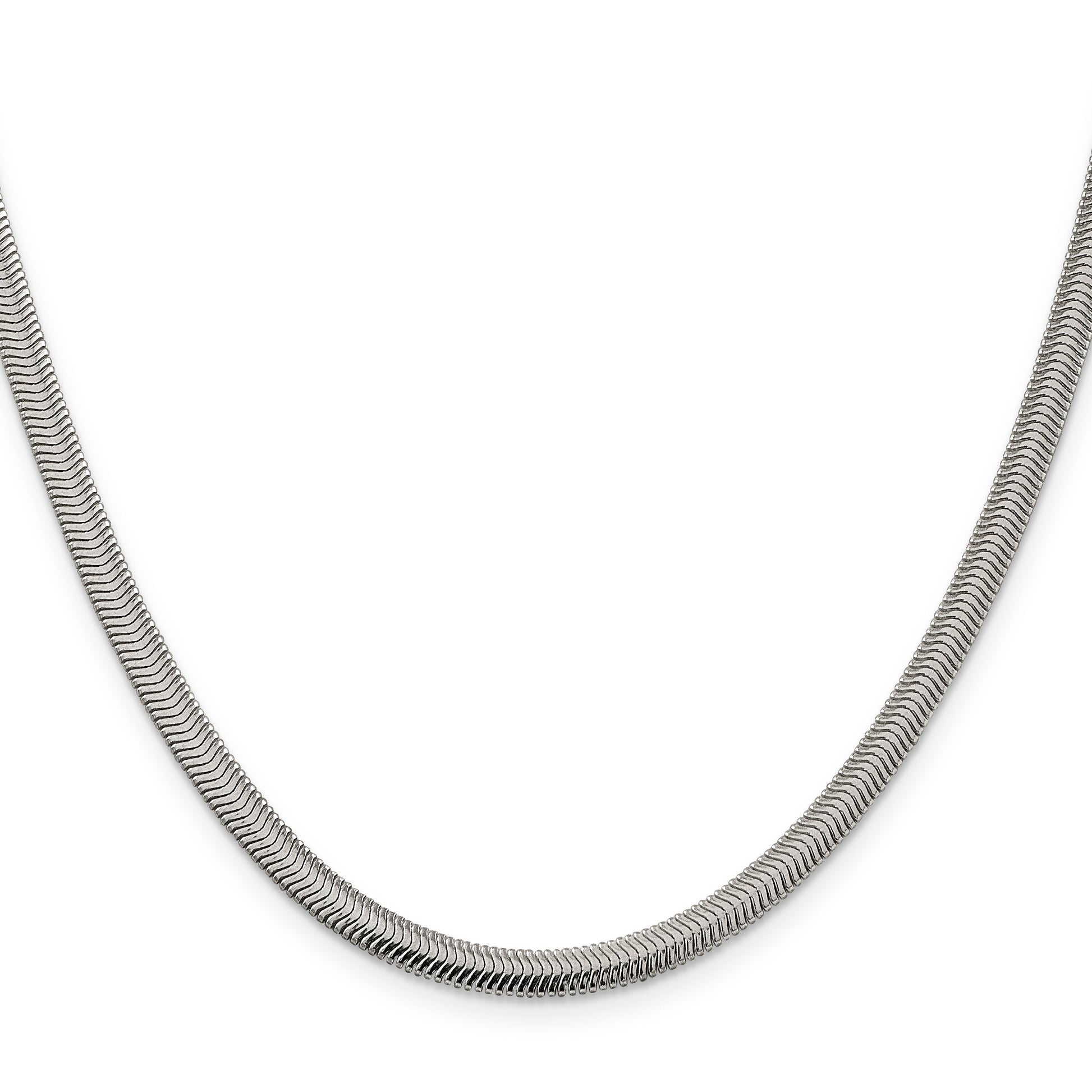 The 16 Inch Sterling Silver 4.2mm Flat Oval Snake Chain is a sleek and stylish accessory for modern women. Crafted from authentic 925 sterling silver, its polished finish gleams with elegance. The chain, boasting a flat profile, measures 16 inches and carries a comfortable 4.2mm width, providing a graceful presence without overwhelming your look. Its chic lobster clasp offers a secure fit, so you can wear it anywhere. Anti-tarnish coating ensures lasting shine, making it a sturdy choice for daily wear. This snake chain is an ideal addition to elevate your jewelry collection.