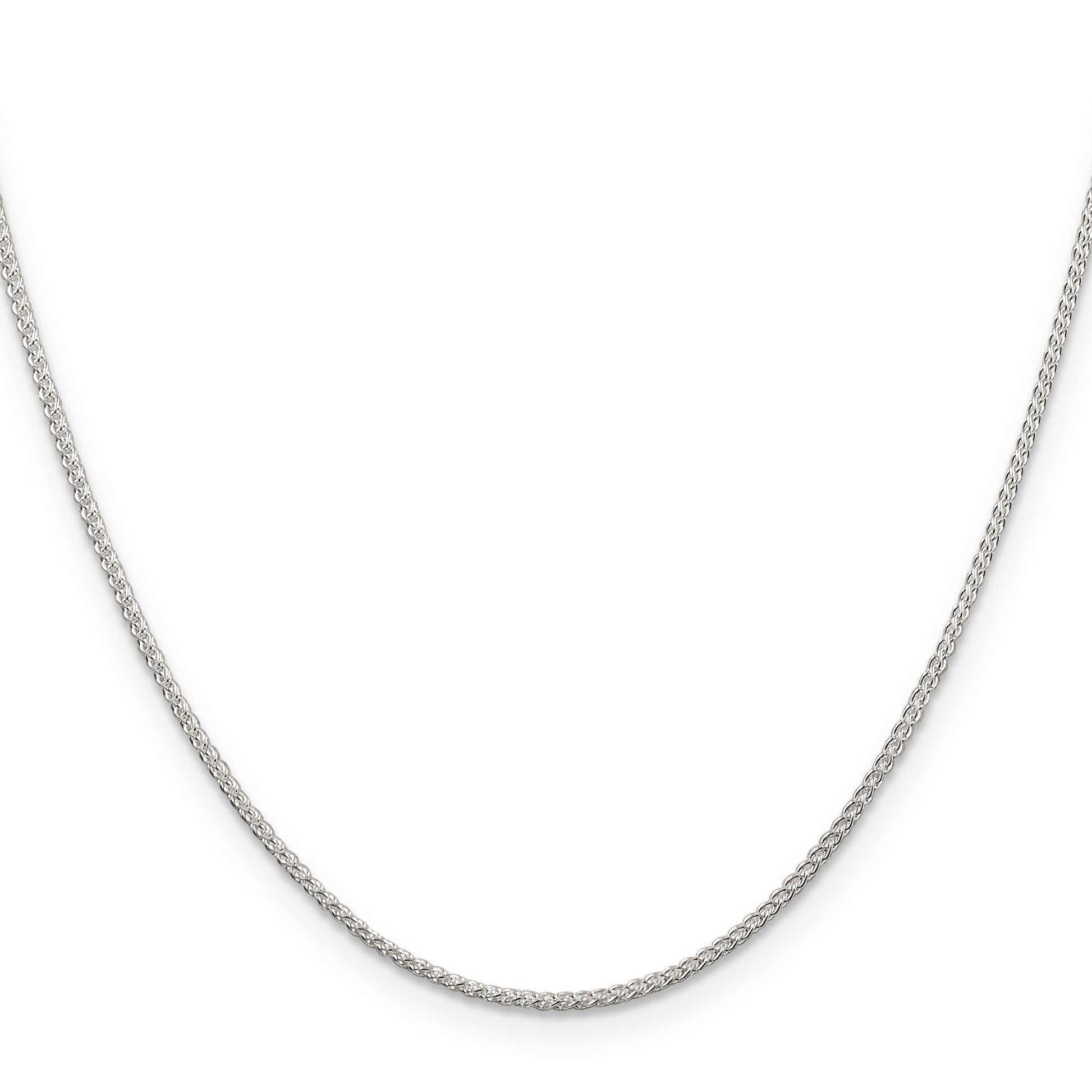 The 18 Inch Sterling Silver 1.25mm Round Spiga Chain Necklace embodies elegance and versatility. This necklace, crafted from durable 925 sterling silver, features an intricate wheat design with a polished finish that catches the light beautifully. The chain is solid and round, boasting a sleek 1.25 mm width. Its dependable lobster clasp ensures secure wear, while the 2-inch extender adds flexibility to your fit. An anti-tarnish coating preserves its luster, making it a timeless piece in any jewelry collection. The 18 Inch Sterling Silver Round Spiga Chain Necklace is a perfect blend of style and sophistication for any occasion.