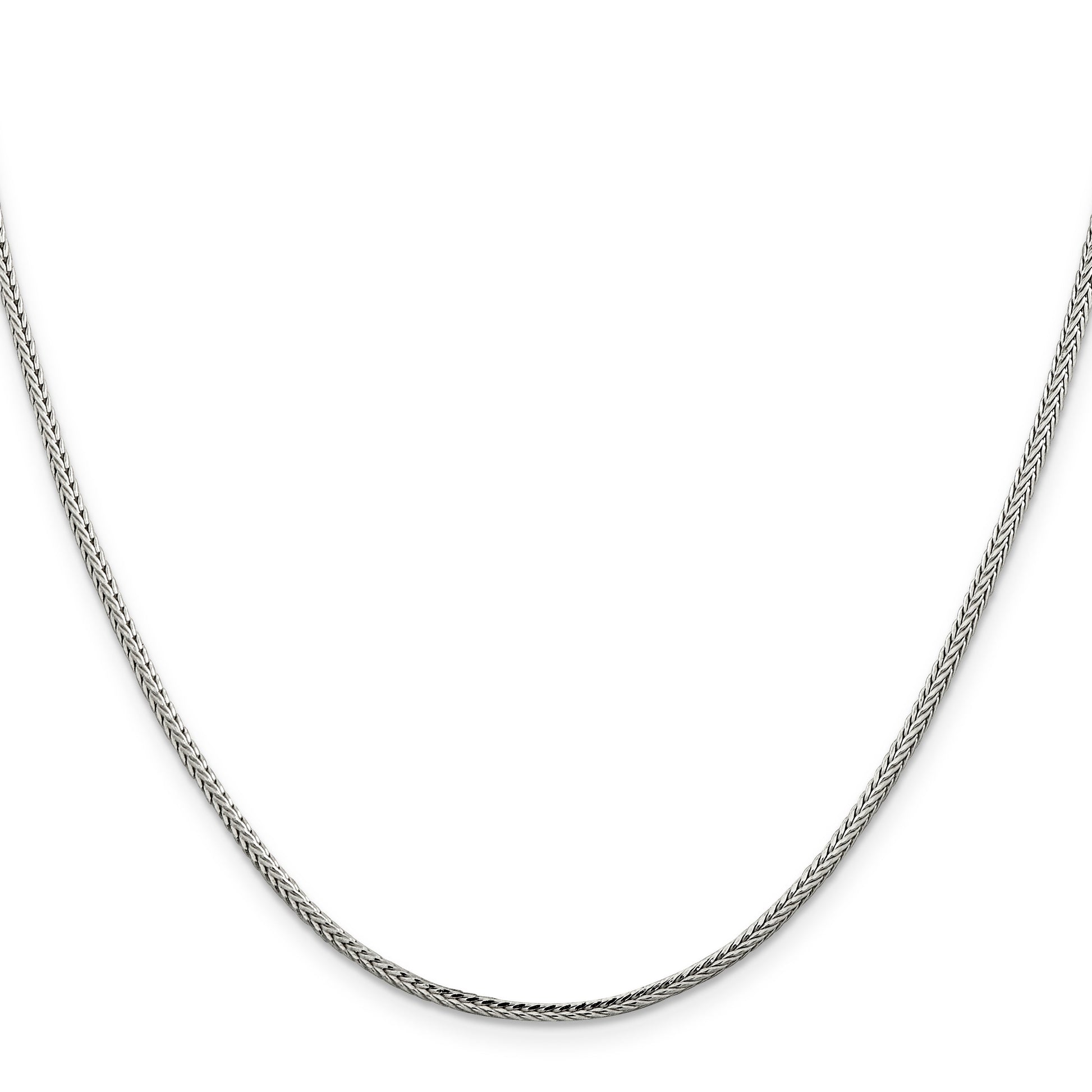 The 18 Inch Sterling Silver 2mm Diamond-Cut Round Franco Chain is a stunning piece of fine jewelry that showcases elegance and sophistication. Crafted from high-quality 925 sterling silver, its polished finish sparkles beautifully in any light. The diamond-cut texture adds an extra touch of brilliance, making this chain a true head-turner. Measuring 18 inches long and 2mm thick, the solid, round Franco chain sits perfectly around the neck. A reliable lobster clasp secures it in place, showcasing a seamless design perfect for everyday wear or special occasions. Elevate your style with the 18 Inch Sterling Silver 2mm Diamond-Cut Round Franco Chain.