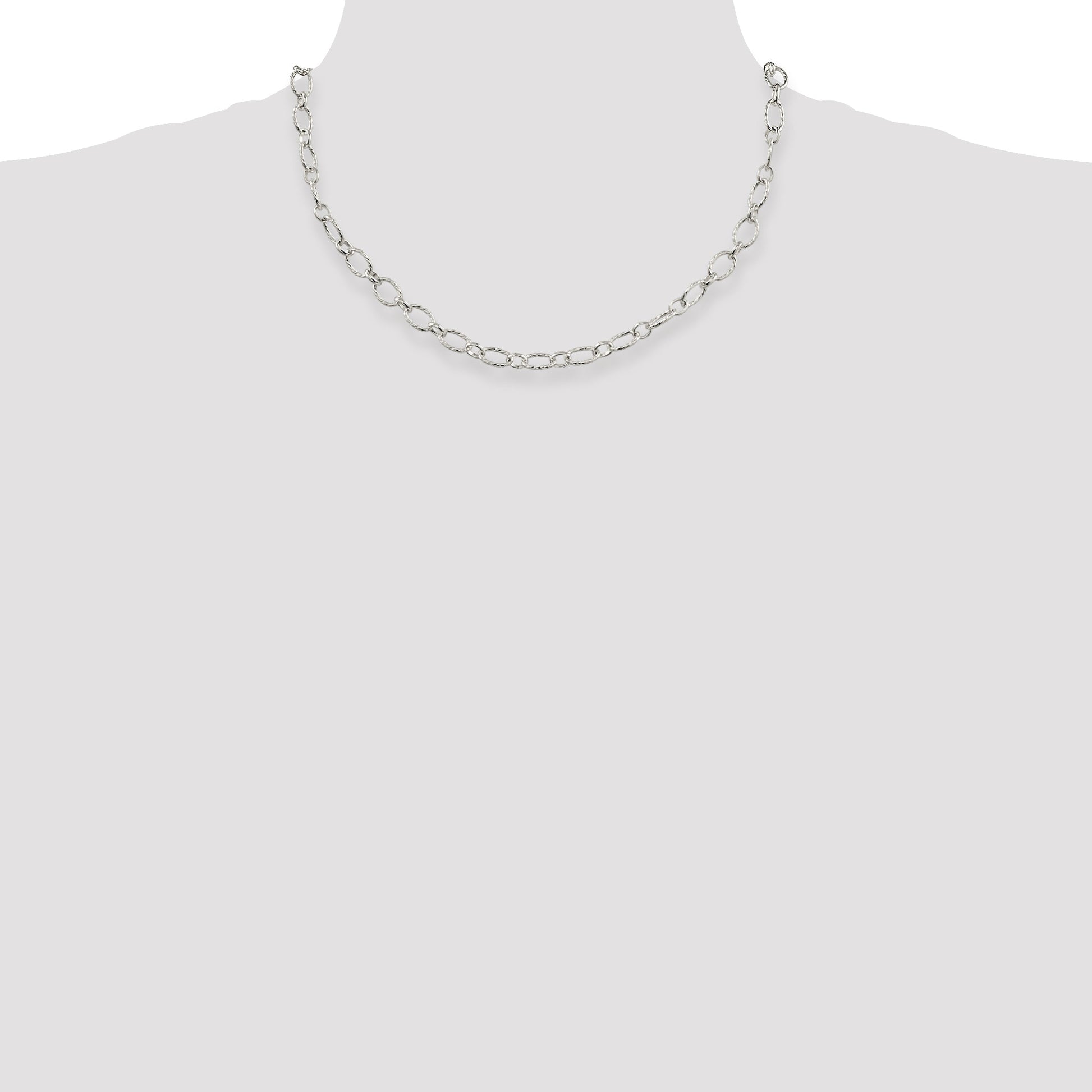 Step up your accessory game with this 18 Inch Sterling Silver 6.1mm Fancy Patterned Rolo Chain. Crafted from pure sterling silver, this chain flaunts a polished finish that gleams with every movement. Its 6.1mm width and intricate rolo design add a touch of refined elegance that pairs perfectly with any outfit. The handmade piece features a solid composition, ensuring both durability and timeless beauty. A lobster clasp secures this gem, making it easy to wear. The 18 Inch Sterling Silver 6.1mm Fancy Patterned Rolo Chain is truly a must-have for any jewelry lover.