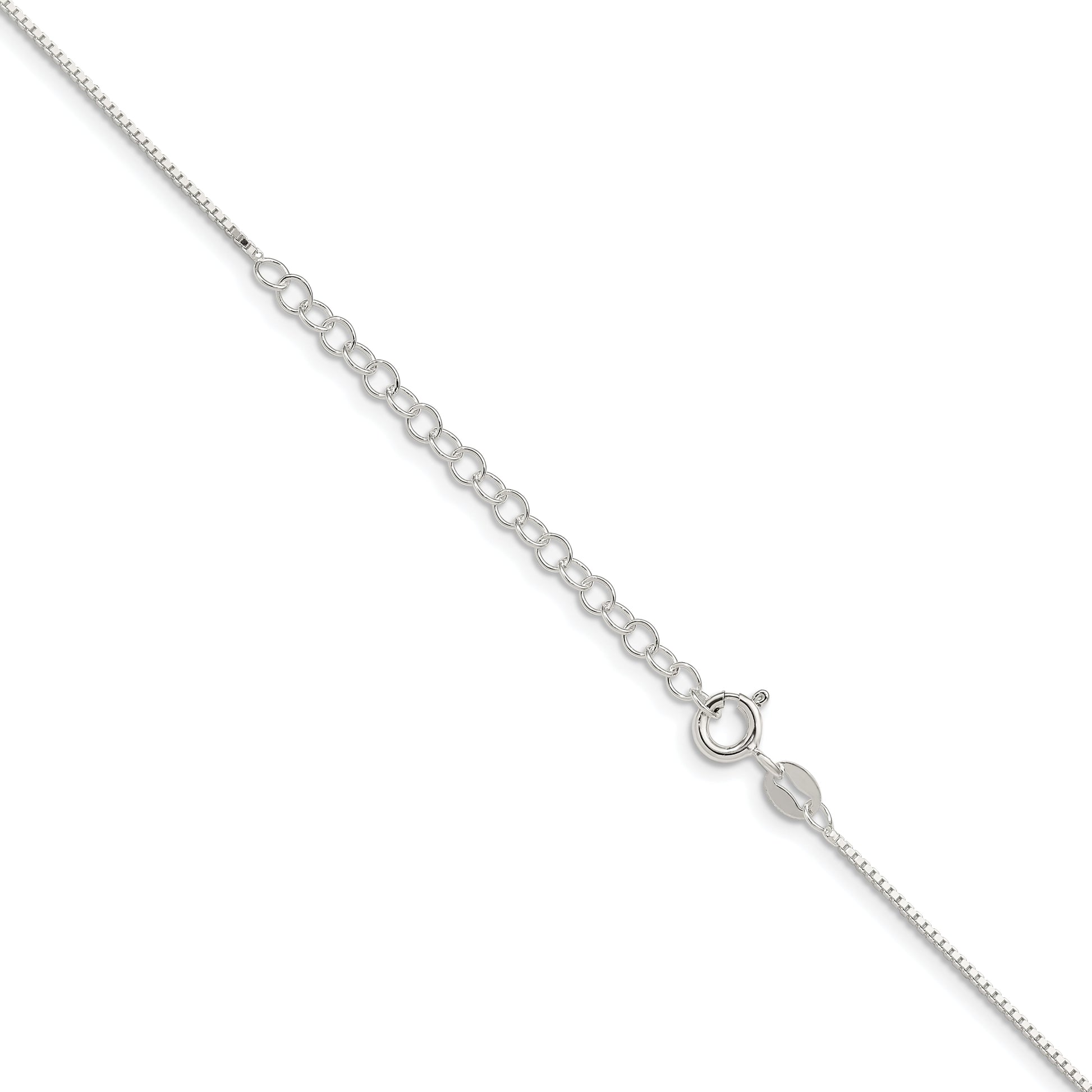 The 18 Inch Sterling Silver .9mm Box Chain with a 2-inch extender is the perfect blend of elegance and versatility. Crafted from 925 sterling silver, this polished chain offers a refined look. The box chain style adds a touch of sophistication with a delicate 0.9 mm width, ensuring a subtle yet stylish presence around the neck. An anti-tarnish coating keeps it shining brightly. The spring ring clasp ensures secure closure, while the 2-inch extender offers flexible styling options. Perfect for any occasion, the 18 Inch Sterling Silver .9mm Box Chain complements any outfit effortlessly.