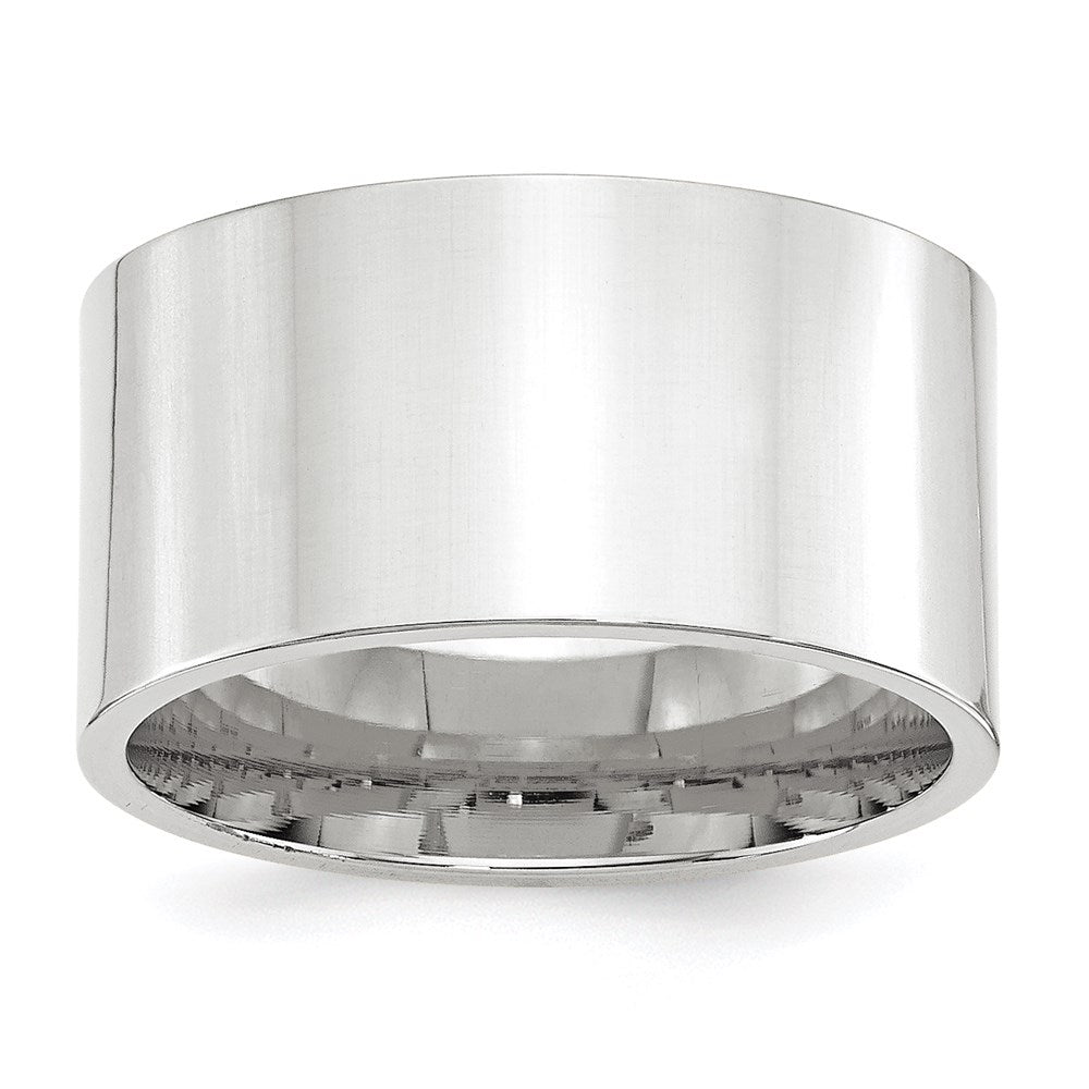 18k White Gold 12mm Standard Weight Flat Comfort Fit Wedding Band Ring