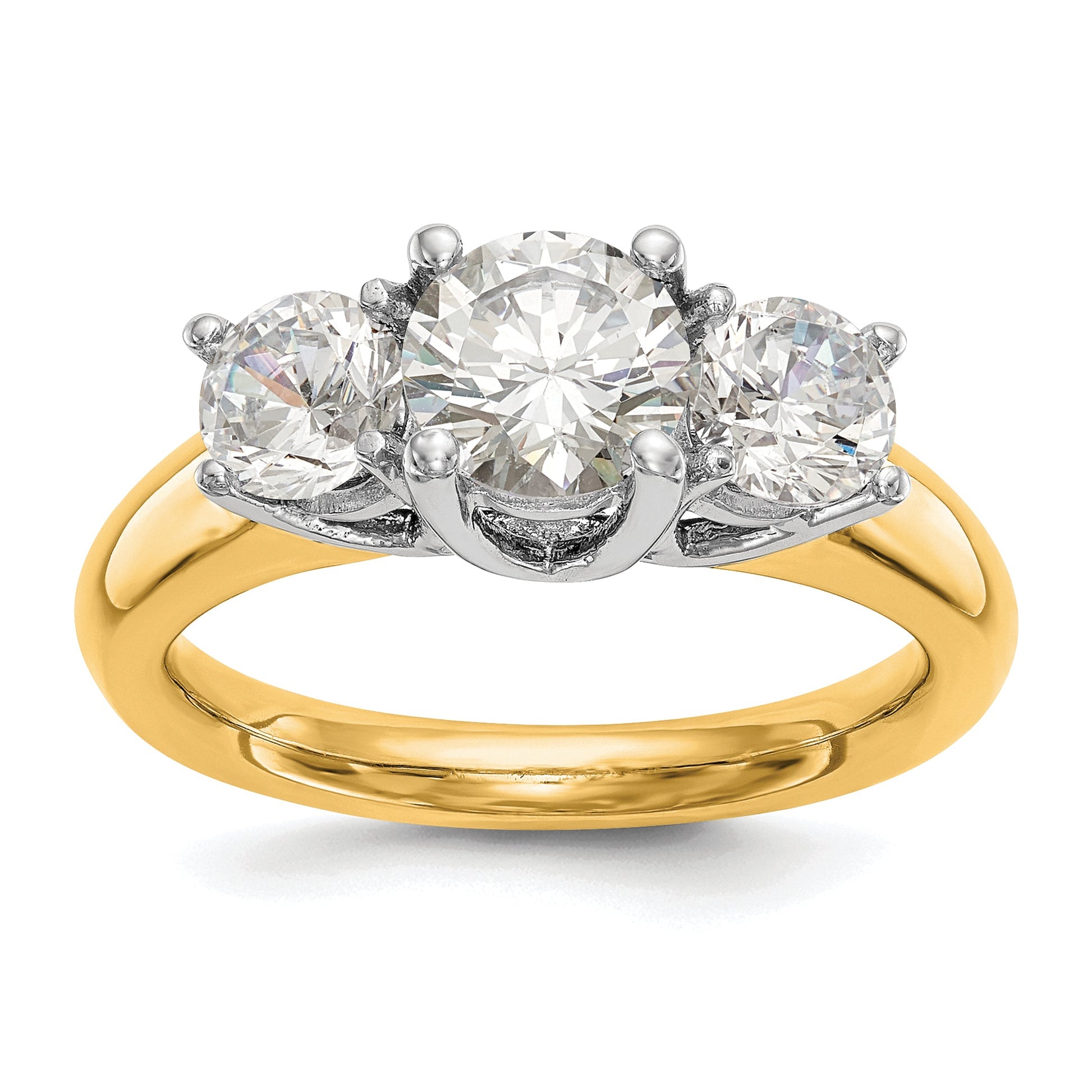2.00ct. CZ Solid Real 14K Two-tone 3-Stone Engagement Ring