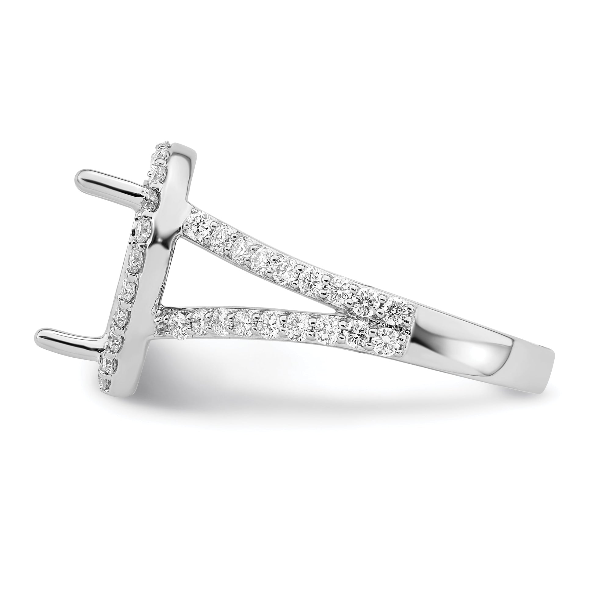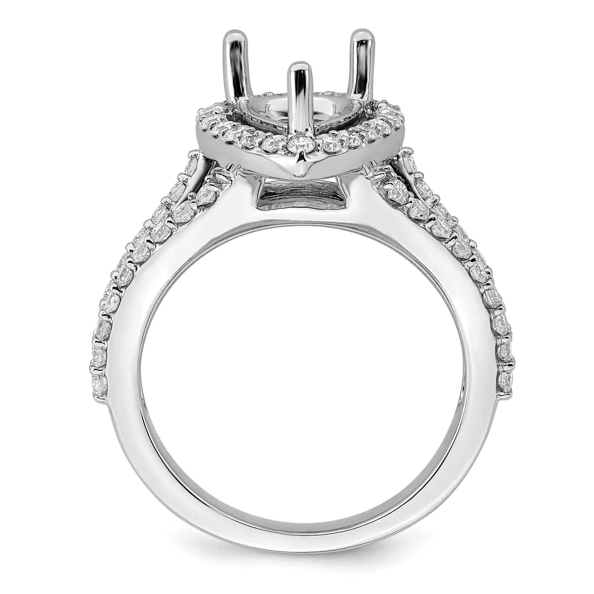 This beautiful ring is semi-mount which means it does not include the center stone. It is available in sizes 6 to 8 with 0.25 sizing adjustment increments. It has a tapered band width ranging from 3.8 to 2.8 mm and a head height of 5 mm. The center stone is a 2 ct pear-shaped AAA quality cubic zirconia and the surrounding stones are 0.015 ct round-cut cubic zirconia with an I1 (AA) stone clarity. The ring is rhodium-plated for added durability and shine. Engraving is not recommended for this ring.