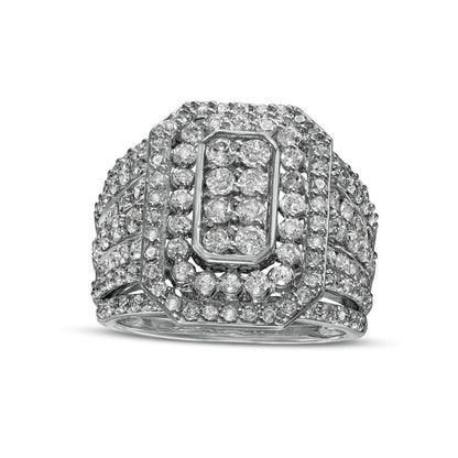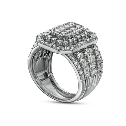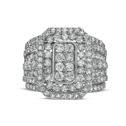 2.20 CT. T.W. Composite Natural Diamond Double Octagonal Frame Multi-Row Three Piece Bridal Engagement Ring Set in Solid 10K White Gold