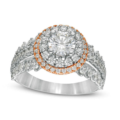 2.0 CT. T.W. Natural Diamond Double Frame Multi-Row Engagement Ring in Solid 14K Two-Tone Gold