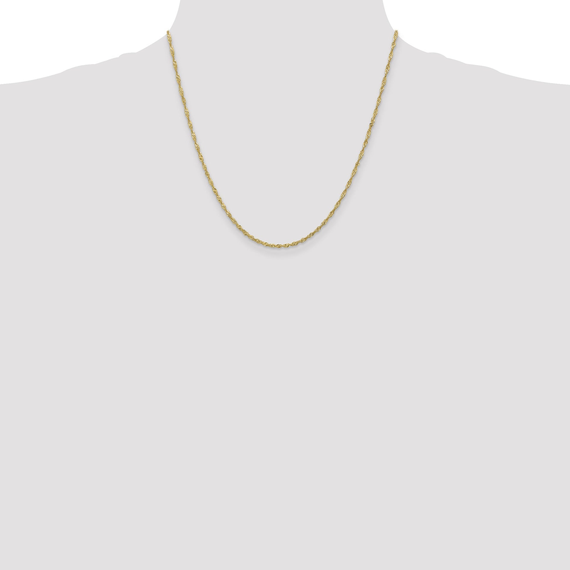 The 20-Inch 10K 1.7mm Singapore Chain exudes elegance and style. Crafted from polished 10K yellow gold, this necklace shines with every move. Measuring a perfect 20 inches in length, it offers versatility for daily wear and special outings. The 1.7mm wide chain boasts a secure lobster clasp, promising both beauty and reliability. Made with precision in a casted process, its solid structure ensures durability. Ideal for any jewelry collection, the 20-Inch 10K 1.7mm Singapore Chain combines classic design with modern flair.