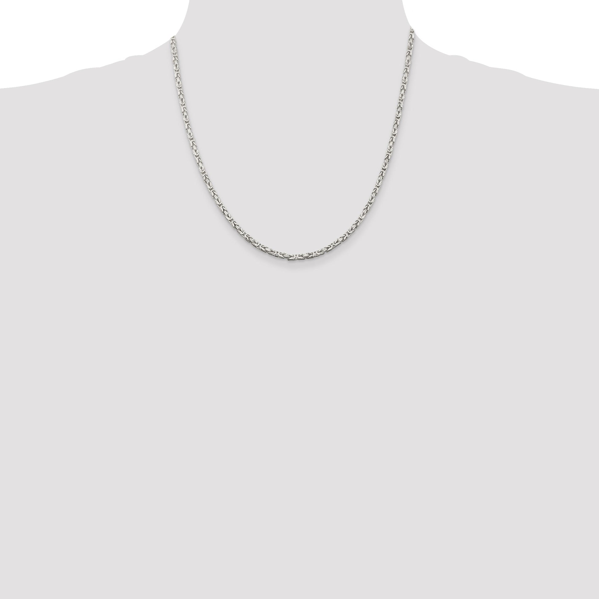 The 20-Inch Sterling Silver 2.5mm Byzantine Chain dazzles with its intertwined, ornate design. Crafted from 925 sterling silver, this polished necklace exudes timeless elegance. The 20-inch length drapes gracefully, while its 2.5mm width adds a touch of subtle sophistication. A secure lobster clasp ensures it stays in place, perfect for daily wear. This solid, machine-made piece is a stunning representation of Byzantine artistry, making it a versatile addition to any jewelry collection. Add a touch of class with the 20-Inch Sterling Silver 2.5mm Byzantine Chain.
