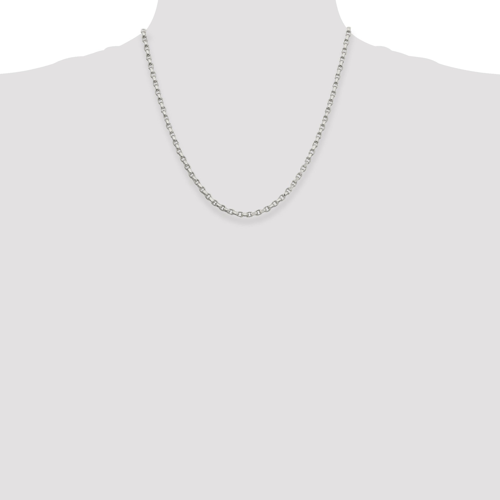 The 20 Inch Sterling Silver 3.5mm Diamond-Cut Rolo Chain exudes timeless elegance, perfect for any stylish woman. Crafted from 925 sterling silver, the chain boasts a polished finish that gleams beautifully. At 20 inches long and 3.5mm wide, it drapes gracefully around the neck, making a bold yet tasteful statement. Its diamond-cut texture adds a touch of sparkle, while the anti-tarnish coating ensures long-lasting shine. A solid, machine-made construction paired with a lobster clasp offers both durability and ease of wear. Elevate your jewelry collection with the exceptional 20 Inch Sterling Silver 3.5mm Diamond-Cut Rolo Chain today.