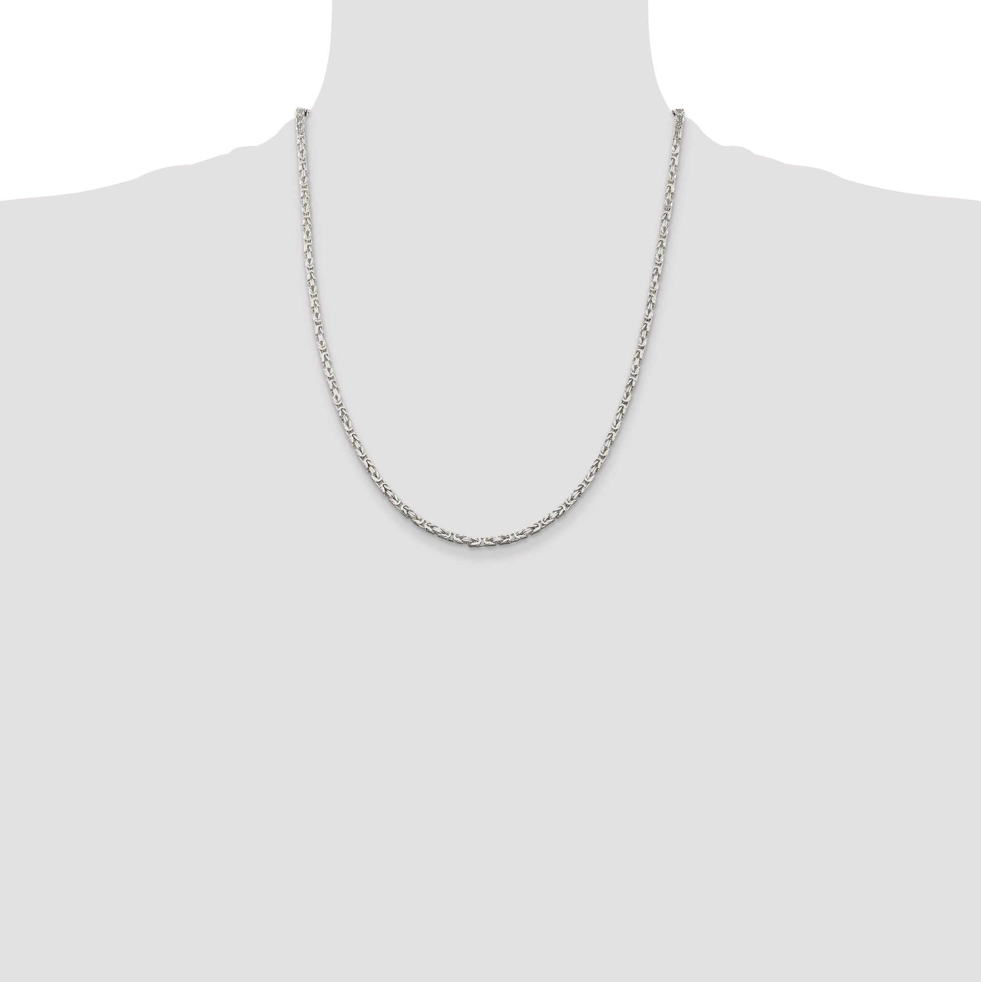 The 22 Inch Sterling Silver 2.5mm Byzantine Chain is a true statement piece. Crafted from fine 925 sterling silver, this necklace exhibits a polished finish, showcasing its striking intricate pattern. With its versatile 22-inch length and robust 2.5mm width, it offers a perfect balance of elegance and durability. The bold Byzantine chain style adds a touch of sophistication to any outfit. A secure lobster clasp ensures a snug fit, making it ideal for daily wear or special occasions. This exquisite chain’s solid construction highlights its timeless design, making the 22 Inch Sterling Silver 2.5mm Byzantine Chain an essential addition to any jewelry collection.