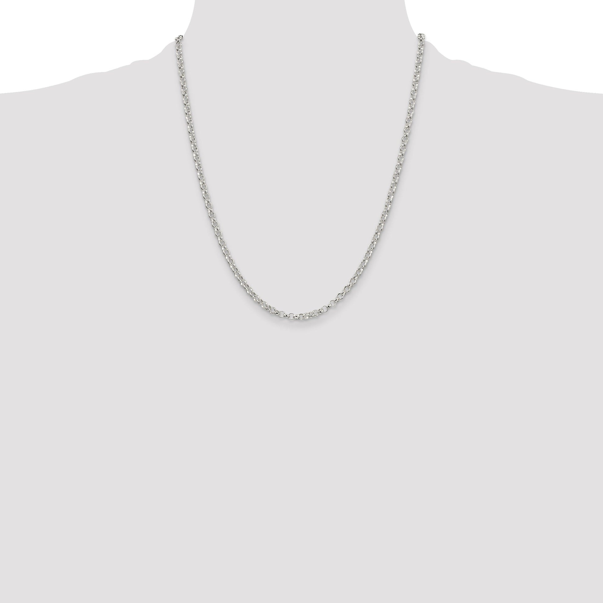 Meet your new wardrobe staple, the 22 Inch Sterling Silver 3.5mm Rolo Chain. Crafted from genuine 925 sterling silver, this chain flaunts a polished finish and anti-tarnish coating, ensuring it shines brightly through every wear. With a practical lobster clasp, it's secure and easy to fasten. This chain, lightweight yet solidly casted, sits comfortably at 22 inches, making it perfect for standalone wear or layering with other favorites. Designed with a classic rolo style and a width of 3 mm, it's a timeless piece that complements any outfit. The 22 Inch Sterling Silver 3.5mm Rolo Chain brings elegance and sophistication to your jewelry collection.