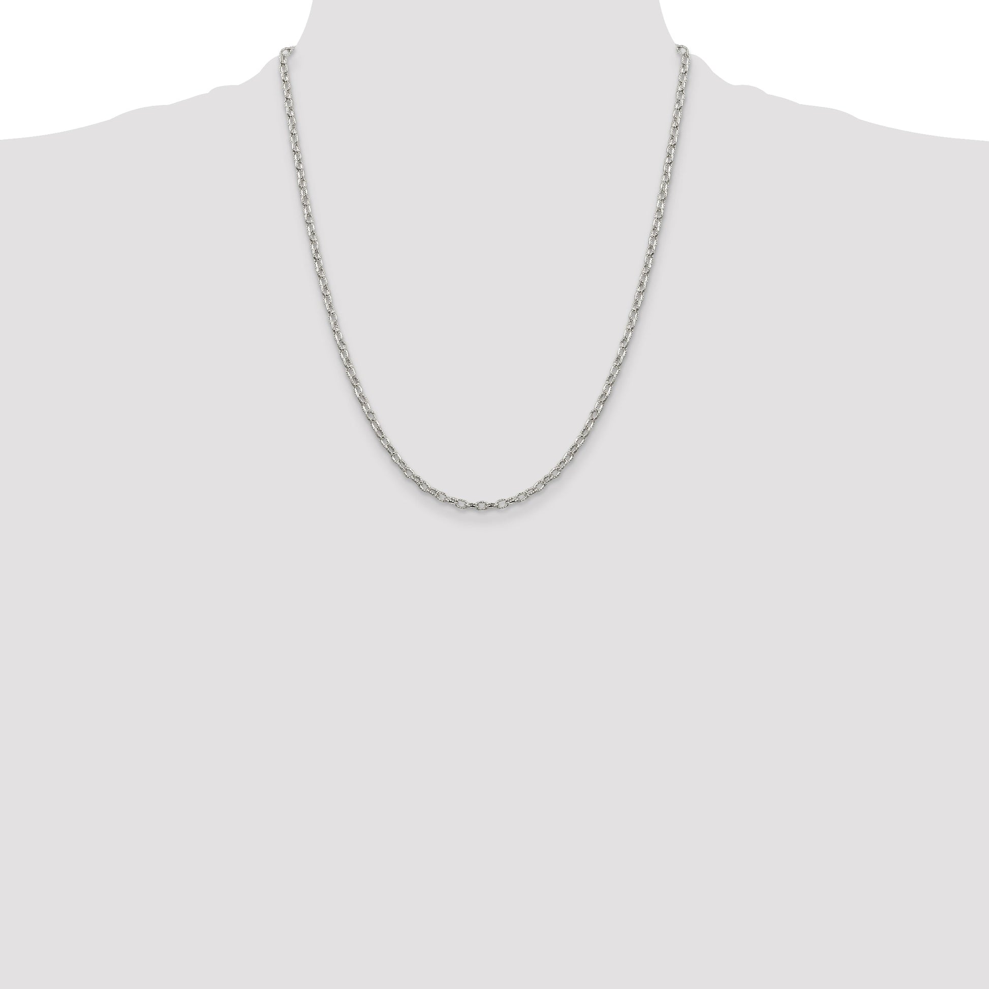 The 22 Inch Sterling Silver 3mm Fancy Patterned Rolo Chain is an elegant addition to any jewelry collection. The chain boasts a 925 sterling silver make, giving it a timeless shine and durability. Its polished finish ensures a sleek look, while the intricate patterned design adds a unique touch. Designed for comfort, this 22-inch chain features a secure lobster clasp that makes wearing and removing it easy. The chain's anti-tarnish coating preserves its luster for years. Perfect for everyday wear or special occasions, the 22 Inch Sterling Silver Rolo Chain is a must-have.