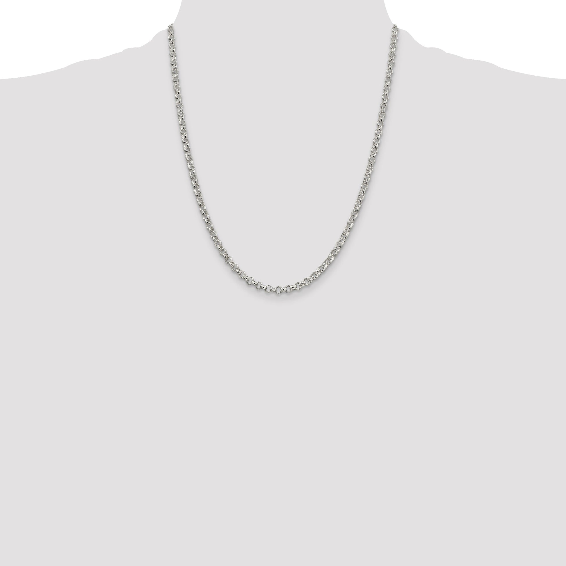 Elevate your style with the 22 Inch Sterling Silver 4mm Rolo Chain. This fine jewelry piece showcases the elegance of polished sterling silver, known for its 925 purity. The chain stretches 22 inches, perfect for layering or making a statement on its own. Its 4mm width offers a striking presence, while the rolo chain design ensures a classic appeal. The lobster clasp provides secure and easy wear. An anti-tarnish coating adds durability, keeping the silver shine long-lasting. The 22 Inch Sterling Silver 4mm Rolo Chain enhances any jewelry collection with its solid craftsmanship and timeless beauty.