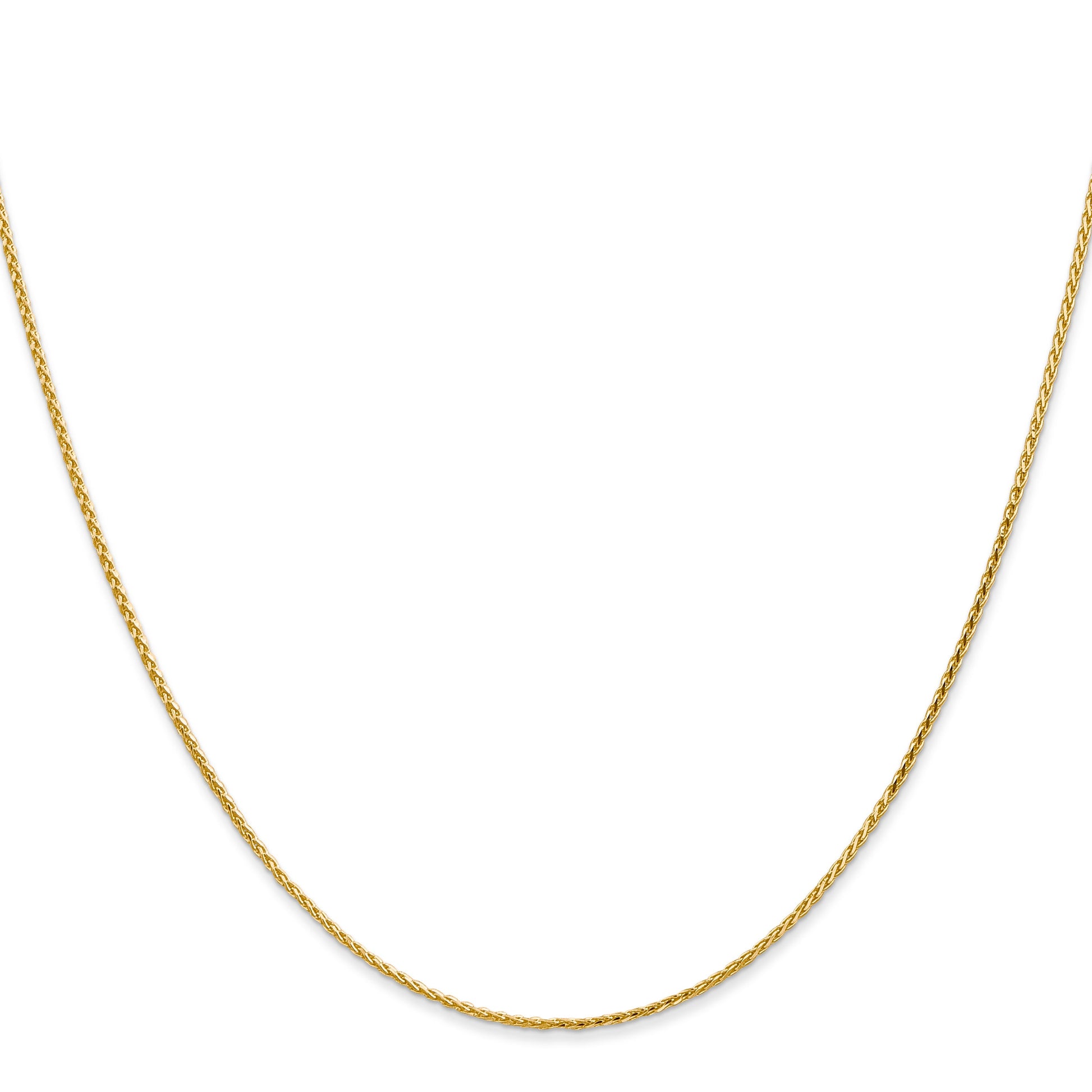 Introducing the 24 Inch 14K 1.0mm D/C Wheat Chain, a sleek and polished piece perfect for any fine jewelry collection. Crafted from high-purity 14K yellow gold, this chain boasts a diamond-cut texture and a solid, extruded construction. Measuring 24 inches in length and 1 mm in width, it features a secure lobster clasp. The wheat chain design offers elegance and durability, ensuring a lifetime of wear. The 24 Inch 14K 1.0mm D/C Wheat Chain is more than just jewelry; it's a timeless piece to cherish.