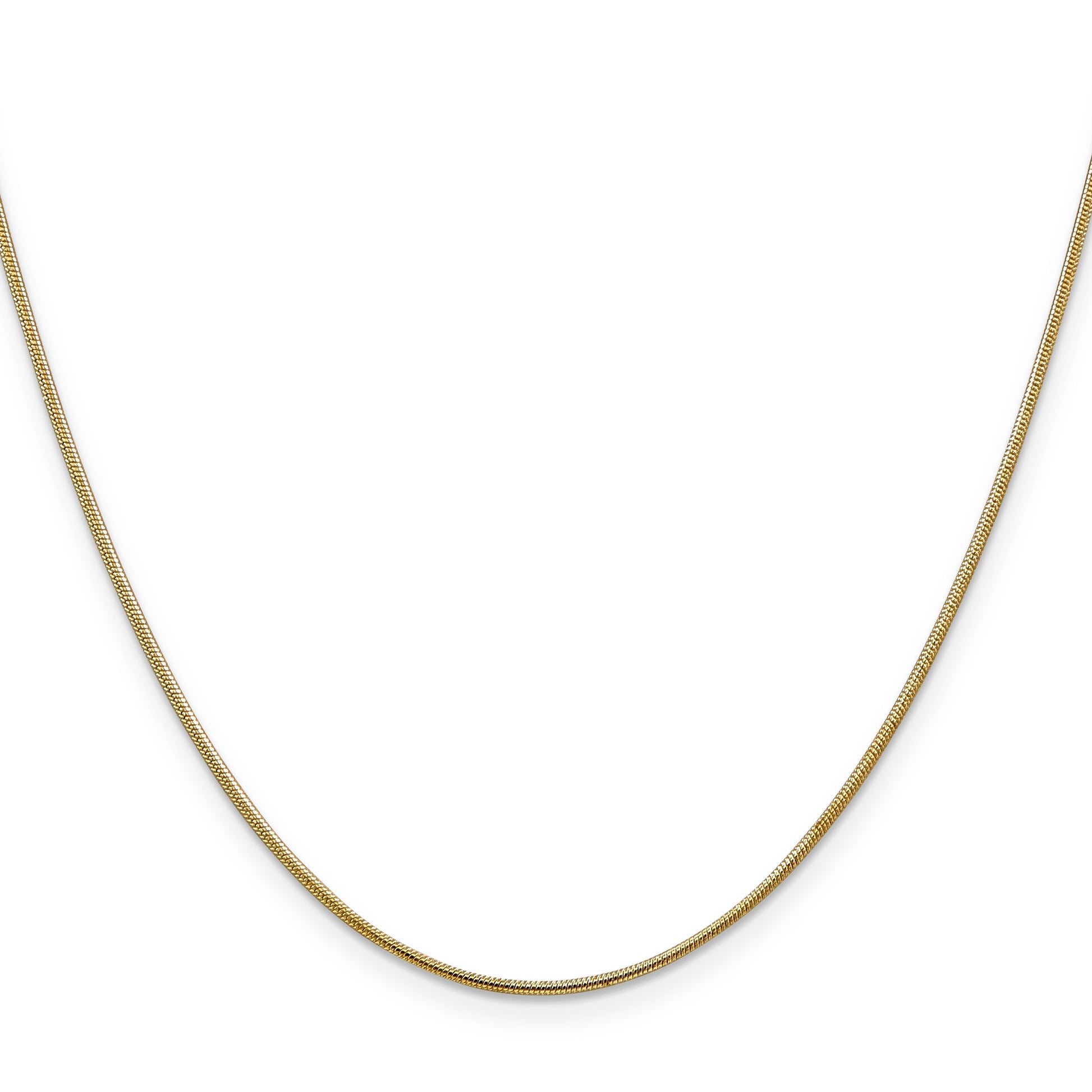The 24 Inch 14K 1mm Round Snake Chain is the epitome of elegance. Made from pure, polished 14K gold, its smooth, round design offers a refined look. The 1mm width ensures a sleek, sophisticated appearance, perfect for any occasion. The durable lobster clasp secures the chain, offering confidence in its wear. This chain is nickel-free, guaranteeing a skin-friendly experience. Its 24-inch length allows it to lay gracefully around your neck. With a lifetime guarantee, the 24 Inch 14K 1mm Round Snake Chain is a timeless addition to any jewelry collection.