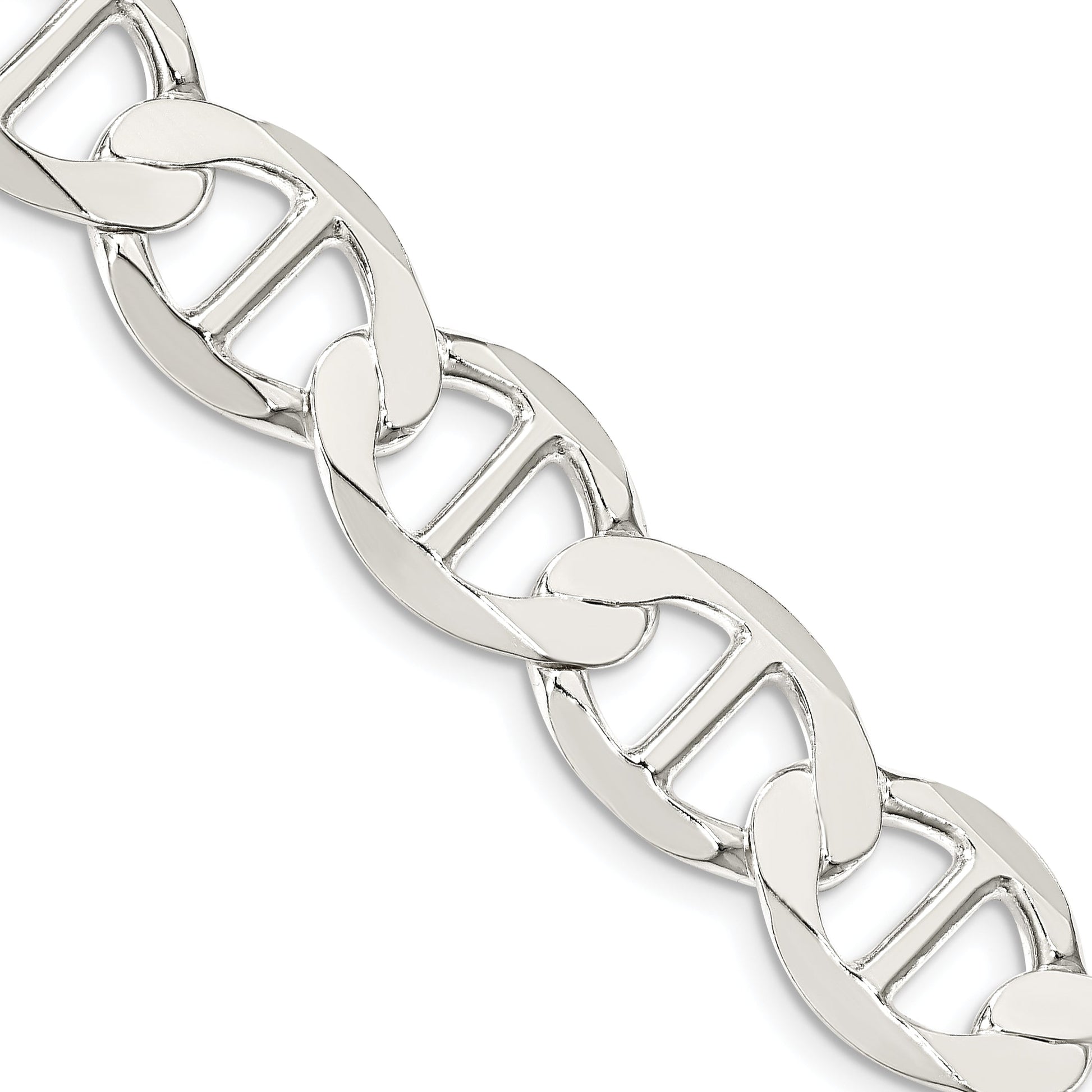 The 24-Inch Sterling Silver 12.3mm Flat Anchor Chain is a stunning piece of jewelry for men. Crafted from 925 sterling silver, it boasts a polished finish that's eye-catching and resistant to tarnishing. This chain features a bold 12.3mm width, making it a statement piece for any outfit. Its robust lobster clasp ensures secure wear. With its semi-solid, flat anchor design, it sits comfortably on the neck. The chain is 24 inches long, providing a perfect fit for many styles. Elevate your jewelry collection with this chic Sterling Silver Flat Anchor Chain.