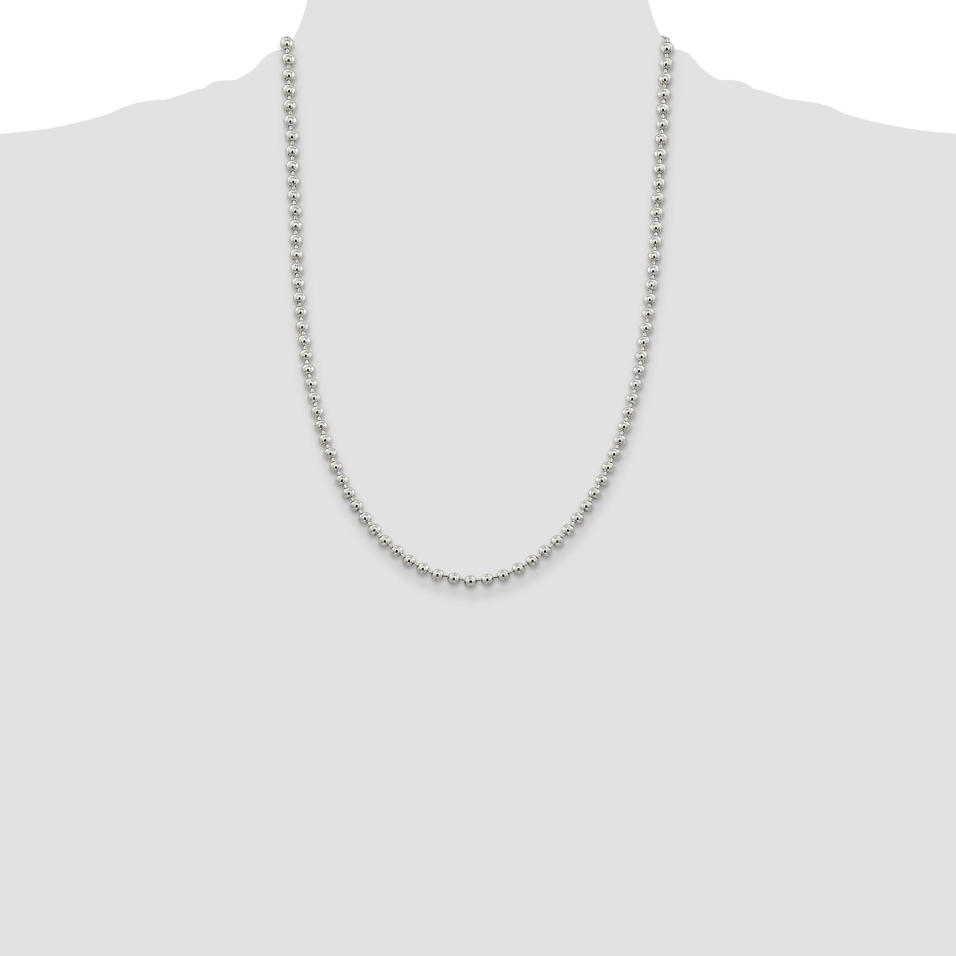 The 24 Inch Sterling Silver 4mm Beaded Chain necklace is a stunning addition to any jewelry collection. Crafted from solid 925 sterling silver, this piece gleams with a polished finish and a durable anti-tarnish coating that ensures lasting shine. The delicate 4mm beaded design adds a touch of elegance and sophistication to your neckline. Equipped with a secure lobster clasp, it promises to be a reliable accessory for many occasions. Perfect for women who appreciate timeless chain styles, the 24 Inch Sterling Silver 4mm Beaded Chain is both versatile and graceful.