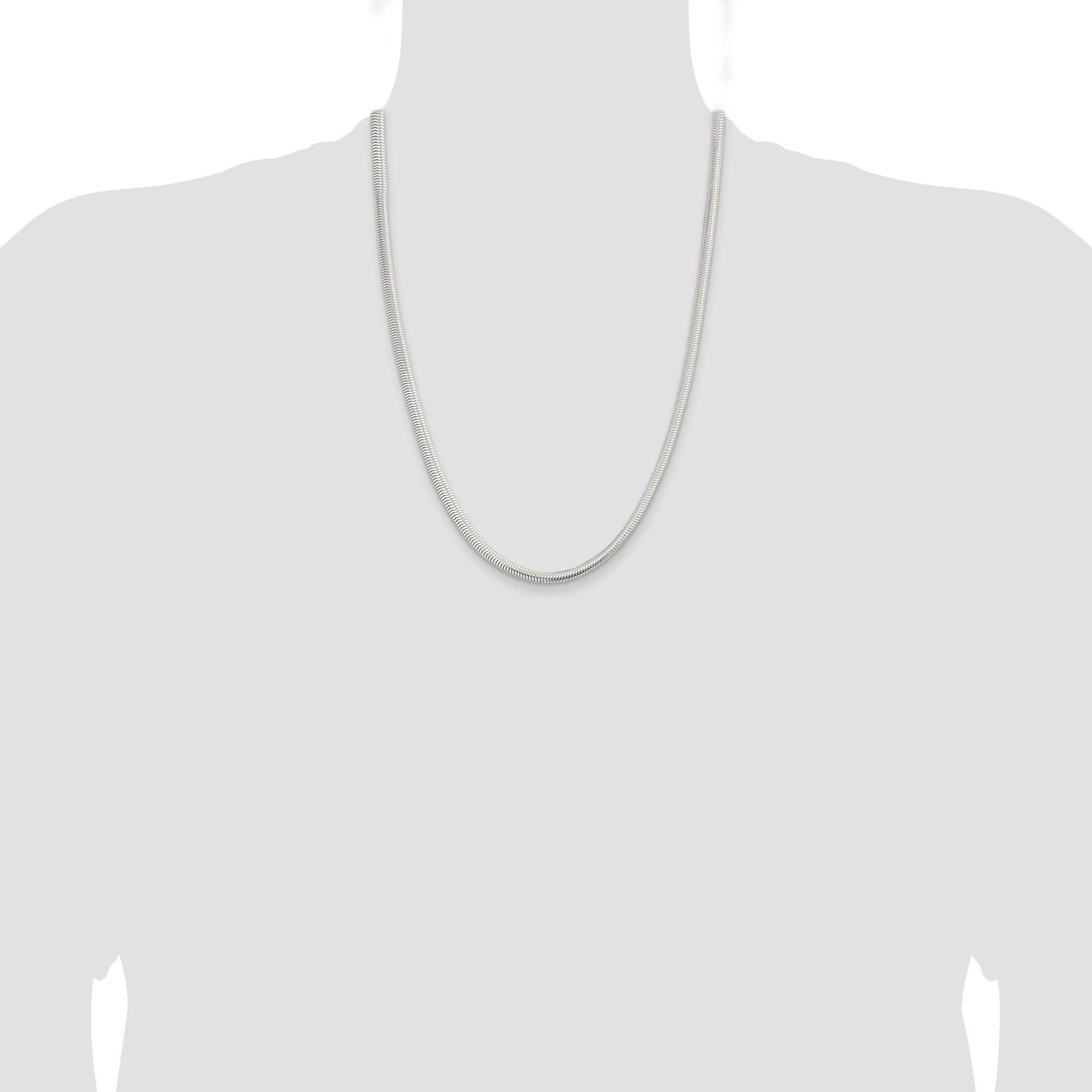 The 24 Inch Sterling Silver Snake Chain is a timeless accessory for any woman's jewelry collection. Crafted from high-quality 925 sterling silver, this chain flaunts a polished finish that gleams with elegance. With its unique 6-sided oval design, this 5mm wide chain is both stylish and versatile, making it perfect for any occasion. The anti-tarnish coating ensures lasting shine, while the lobster clasp offers a secure fit. Whether worn alone or with a pendant, the 24 Inch Sterling Silver Snake Chain is a chic must-have for your wardrobe.