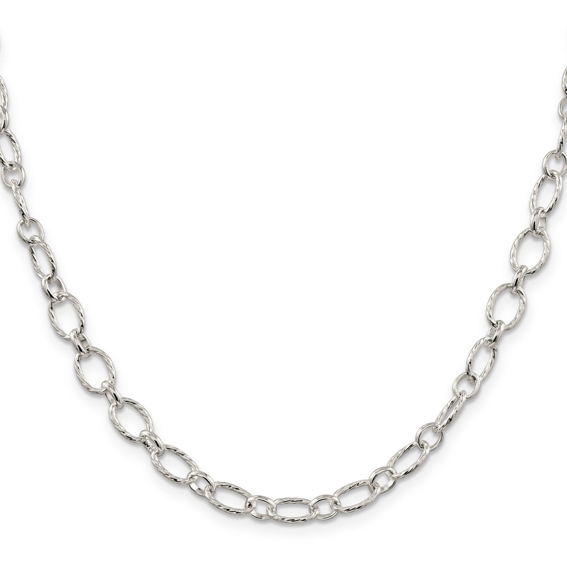 24 Inch Sterling Silver 6.1mm Fancy Patterned Rolo Chain Necklace