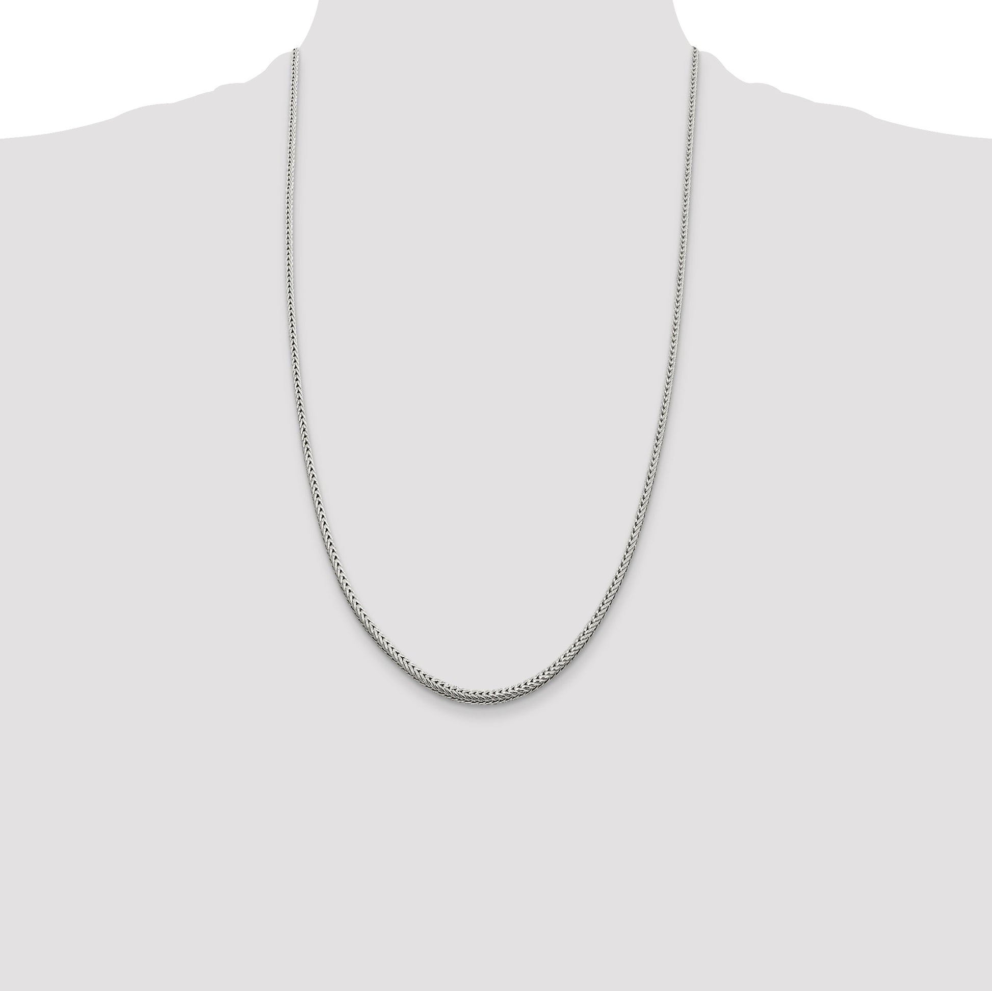 Meet the 26-Inch Sterling Silver 2.5mm Diamond-Cut Round Franco Chain, a stunning piece for those who value elegance with a touch of sophistication. Crafted from 925 sterling silver, this chain features a shiny polished finish that glimmers with every turn. Its 26-inch length and solid, round profile make it a versatile piece, perfect for layering or wearing solo. The 2.5mm diamond-cut Franco design adds a textured brilliance, catching the light with each movement. Secured with a lobster clasp, this women's necklace is a chic addition to any wardrobe. The 26-Inch Sterling Silver Franco Chain elevates your style effortlessly.
