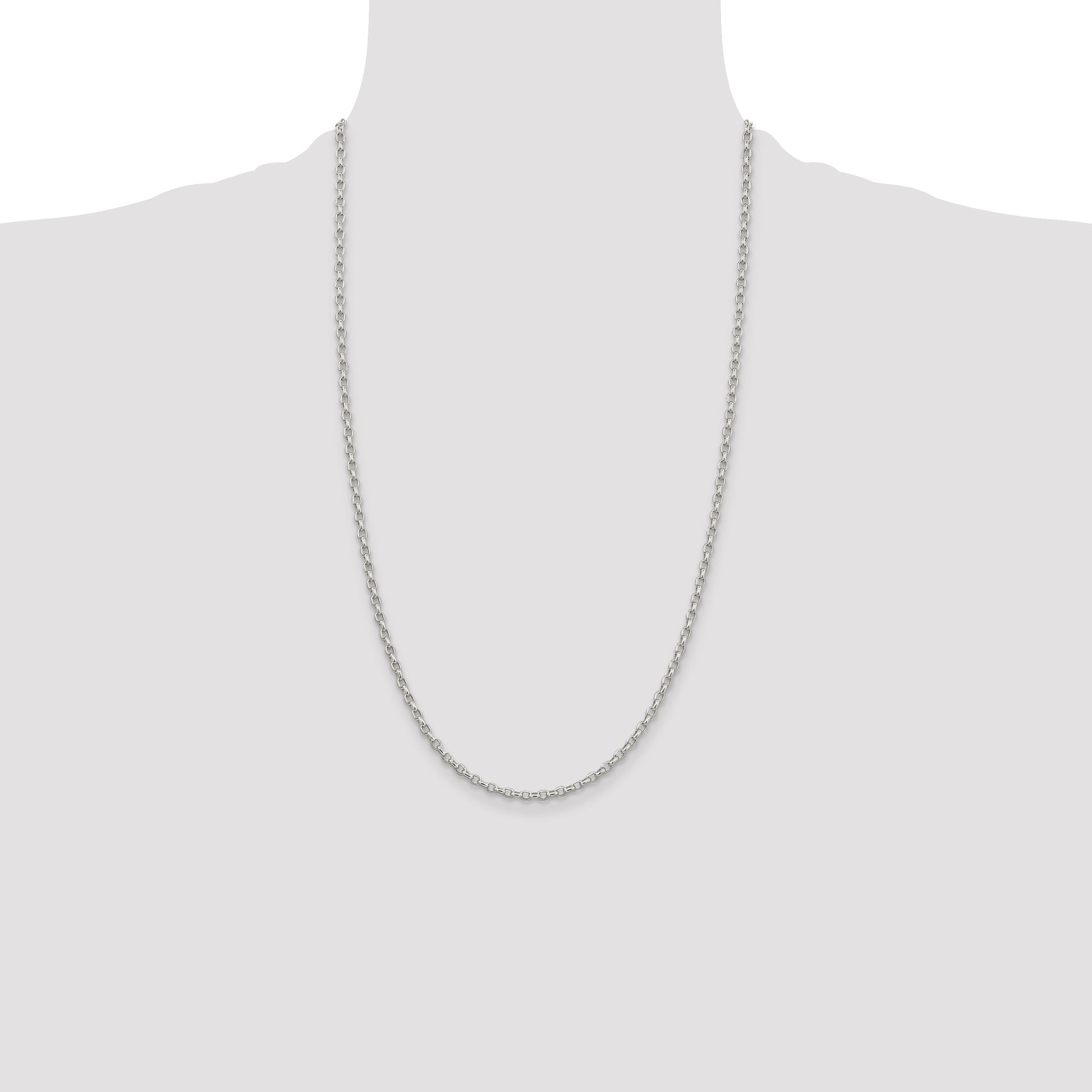 The 26 Inch Sterling Silver 2.75mm Oval Fancy Rolo Chain captures elegance in every link. Crafted from 925 sterling silver, this chain shines with a polished finish, making it a perfect piece to wear alone or with your favorite pendant. Its 26-inch length drapes beautifully for a sleek profile, while the 2.75mm width ensures durability without losing its delicate charm. Secured with a spring ring clasp, this solid rolo chain is designed for women who appreciate timeless style. The 26 Inch Sterling Silver 2.75mm Oval Fancy Rolo Chain promises to elevate any jewelry collection.