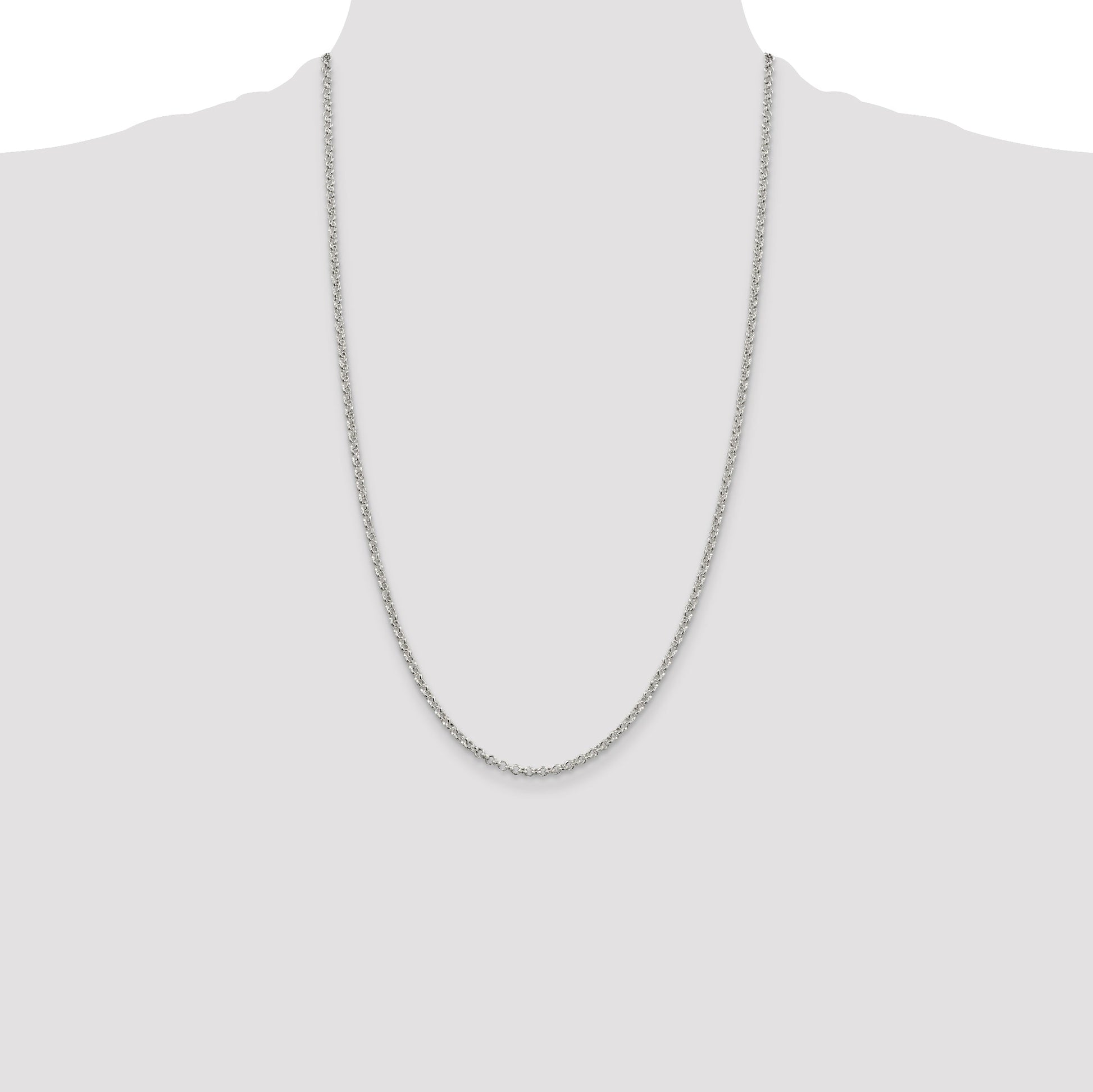 The 26-Inch Sterling Silver 2.8mm Rolo Chain is a timeless piece of jewelry. Made from 925 sterling silver, this chain shines with a polished finish. It boasts a classic rolo design with a 2.8mm width, making it sturdy yet elegant. The lobster clasp ensures a strong hold, providing the perfect blend of style and function. Anti-tarnish coating keeps it looking fresh, while the solid casting promises long-lasting wear. Ideal for women, this chain adds a sparkling touch to any outfit. The 26-Inch Sterling Silver 2.8mm Rolo Chain is not just a necklace—it's a statement.