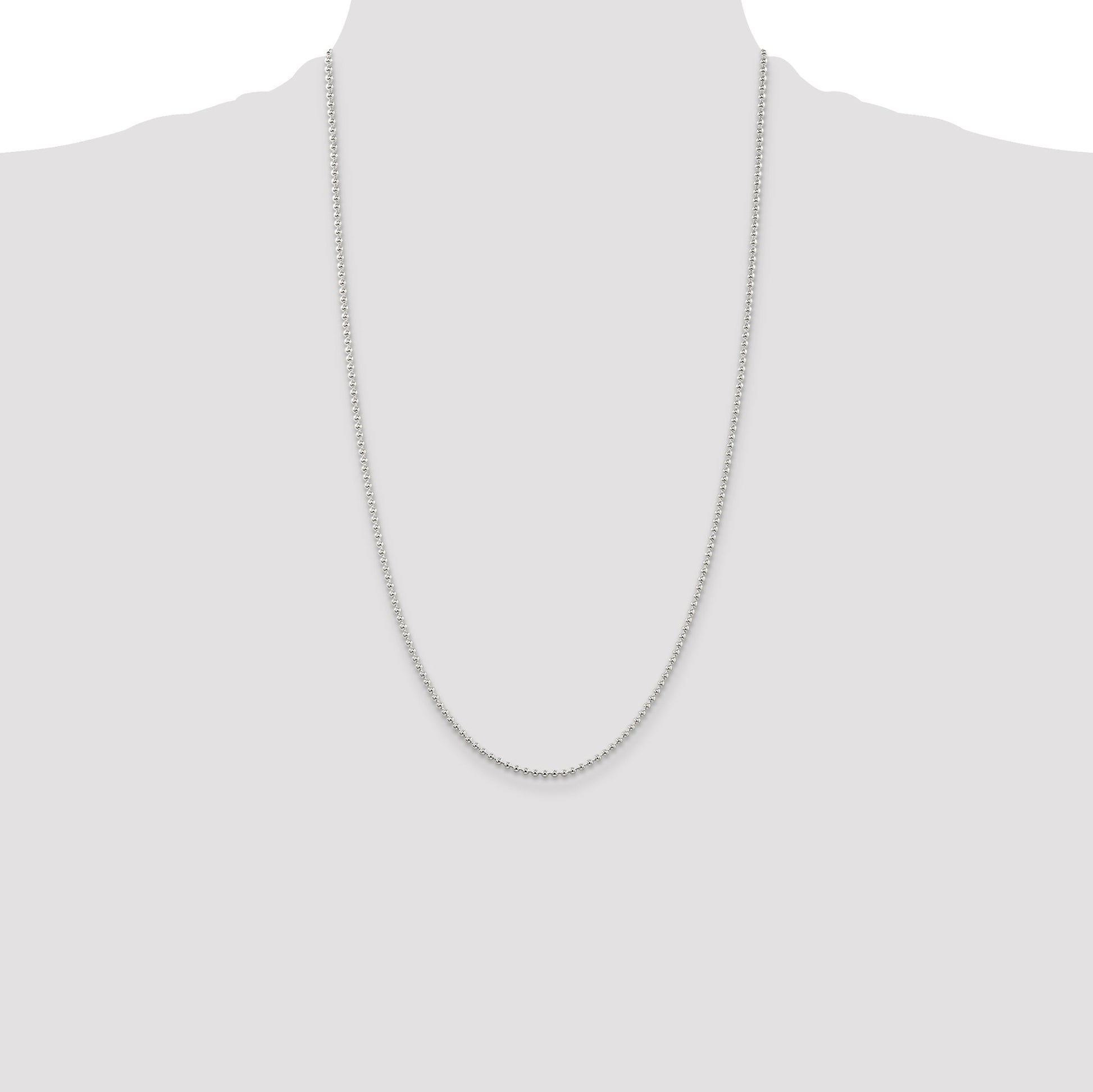 The 26 Inch Sterling Silver 2mm Beaded Chain necklace transforms any look with its elegant simplicity. Expertly crafted from 925 sterling silver, this piece features a polished finish that shines brightly. The chain's ball design adds a subtle texture, making it more than just an accessory. Measuring 26 inches, it drapes beautifully around the neck, secured by a sturdy lobster clasp, ensuring it stays in place. An anti-tarnish coating keeps it looking new, while its solid construction promises longevity. Elevate your jewelry collection with the 26 Inch Sterling Silver 2mm Beaded Chain.