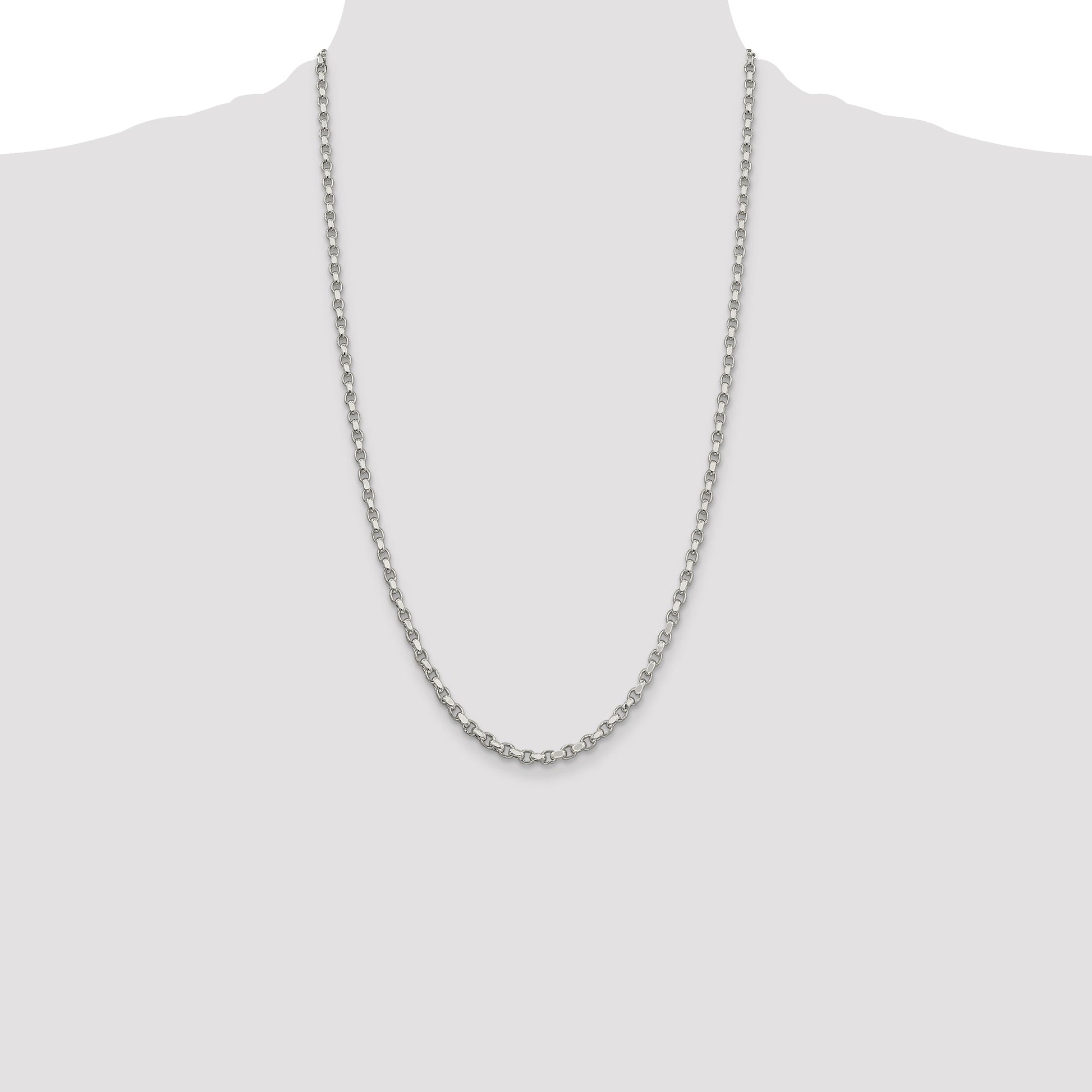 The 26-inch Sterling Silver 3.5mm Diamond-Cut Rolo Chain sparkles with sophistication, making it a must-have addition to any jewelry collection. Crafted from high-quality 925 sterling silver, this polished chain gleams in brilliant white—perfect for adding a touch of elegance to any outfit. Its diamond-cut texture catches light beautifully, showcasing masterful craftsmanship. The anti-tarnish coating ensures lasting brilliance, while the sturdy lobster clasp secures it safely. Machine-made precision guarantees a solid and durable design. Designed for women, this stunning necklace elevates any style. Own the 26-inch Sterling Silver 3.5mm Diamond-Cut Rolo Chain, and wear a piece of timeless luxury.