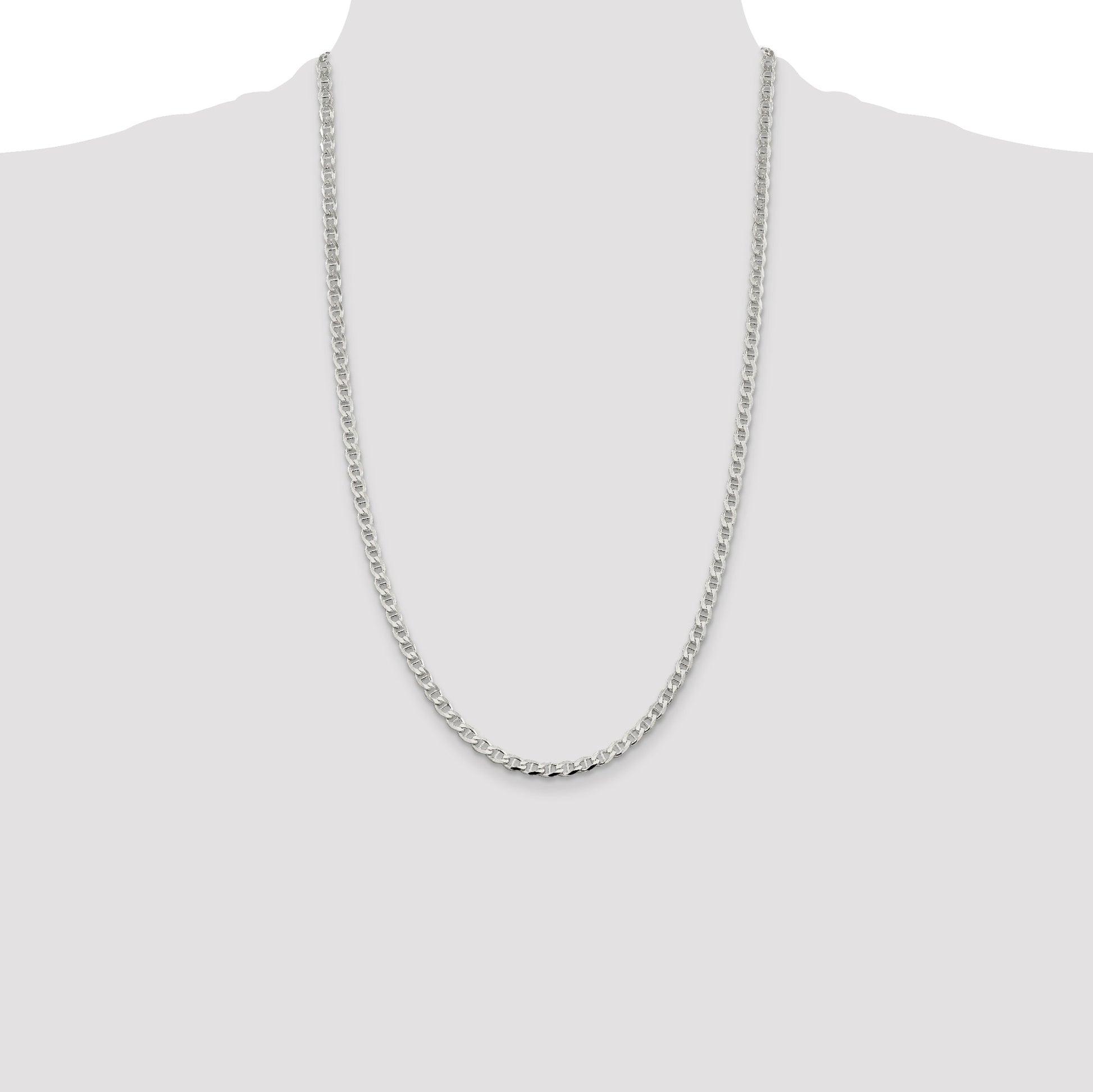 Discover the elegance and durability of our 26 Inch Sterling Silver 4.0mm D/C Flat Anchor Curb Chain. Crafted from 925 sterling silver, this polished piece offers a sleek, shining look, perfect for any occasion. Measuring 26 inches in length and 4.15 mm in width, it boasts a robust anchor chain design. The lobster clasp ensures secure wear, while the anti-tarnish finish keeps it looking new. Casted for a solid, enduring profile, this men's necklace merges style with craftsmanship. The 26 Inch Sterling Silver 4.0mm D/C Flat Anchor Curb Chain is a timeless addition to any jewelry collection.