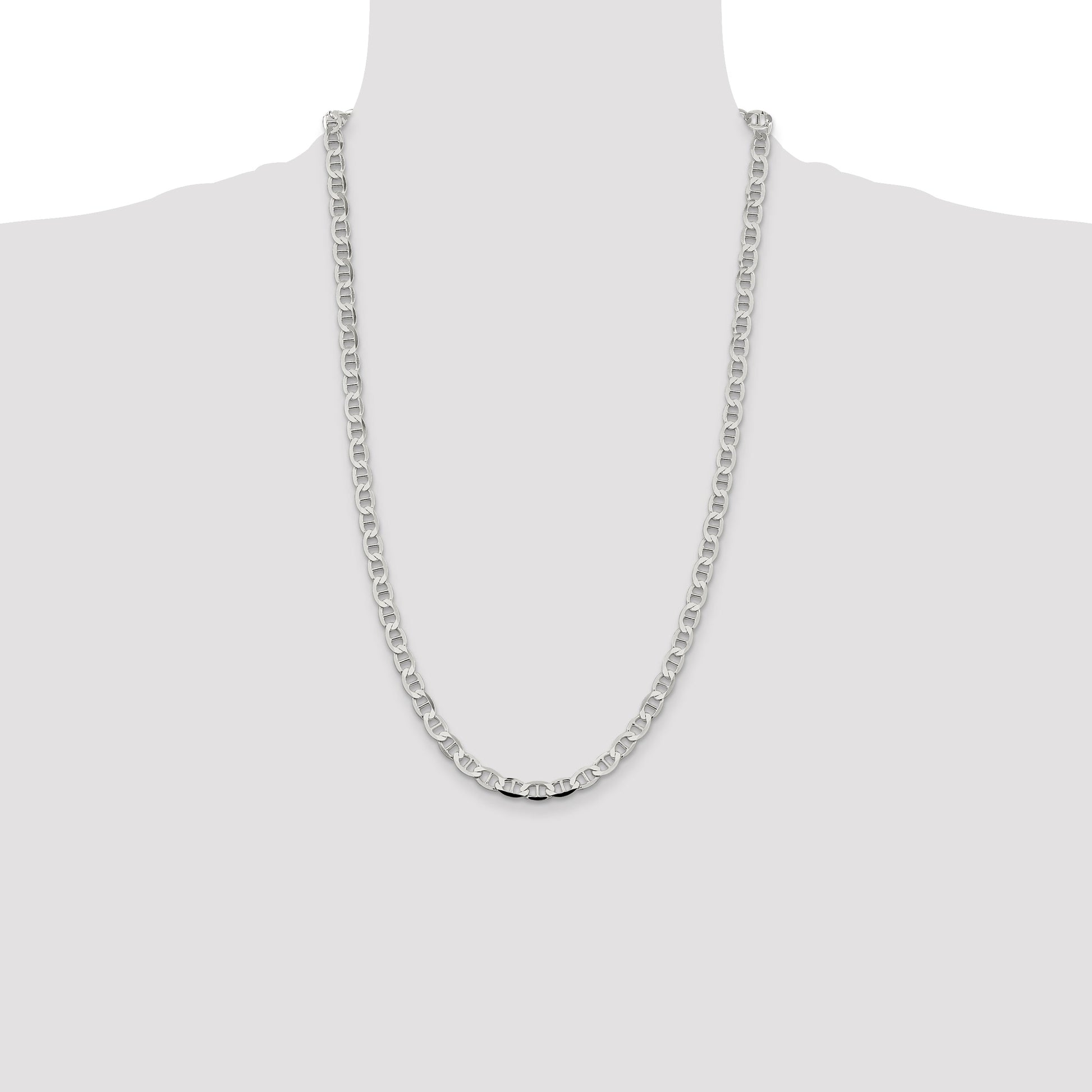 Introducing the 26 Inch Sterling Silver 5.7mm Flat Anchor Chain, a striking addition to any style. Crafted from 925 sterling silver, this chain boasts a polished finish and anti-tarnish coating, ensuring a lasting shine. Its anchor design offers a bold, semi-solid profile that lies flat against the neck, perfect for both casual and formal wear. The chain is 26 inches long and 5.7mm wide, making it a statement piece. A sturdy lobster clasp secures the chain effortlessly. Elevate your look with this impressive 26 Inch Sterling Silver 5.7mm Flat Anchor Chain today.