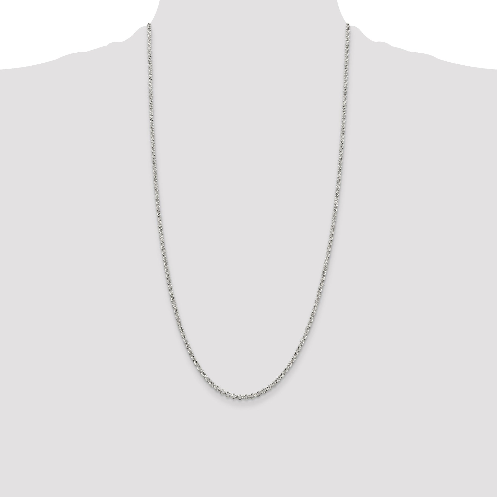 The 28-Inch Sterling Silver 2.8mm Rolo Chain is a perfect blend of elegance and durability. Made from 925 sterling silver, this polished chain shines with a timeless sparkle. Its solid, anti-tarnish design ensures lasting beauty, making it a reliable accessory for any occasion. The 28-inch length effortlessly complements any neckline, while the 2.5mm width provides a subtle yet distinctive presence. A lobster clasp offers secure wear throughout the day. Whether you're looking for a stand-alone piece or pairing it with a pendant, the 28-Inch Sterling Silver 2.8mm Rolo Chain is the ideal choice for women who appreciate refined jewelry.