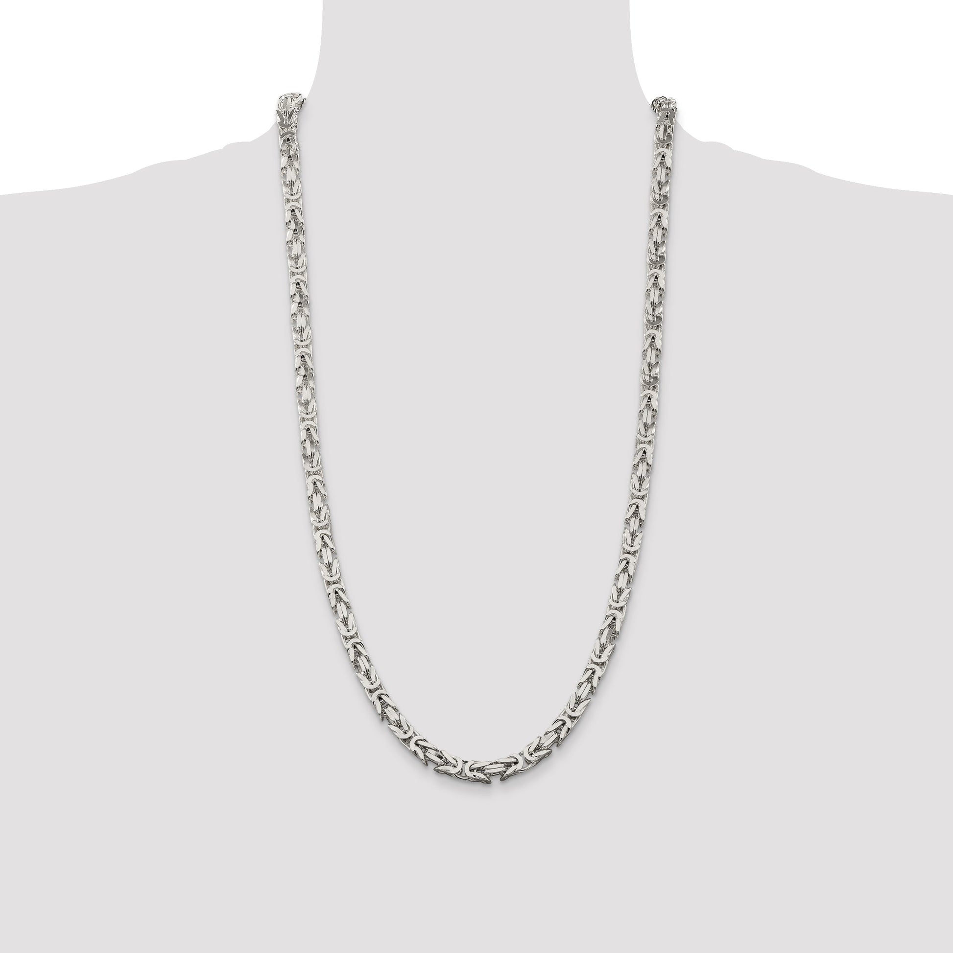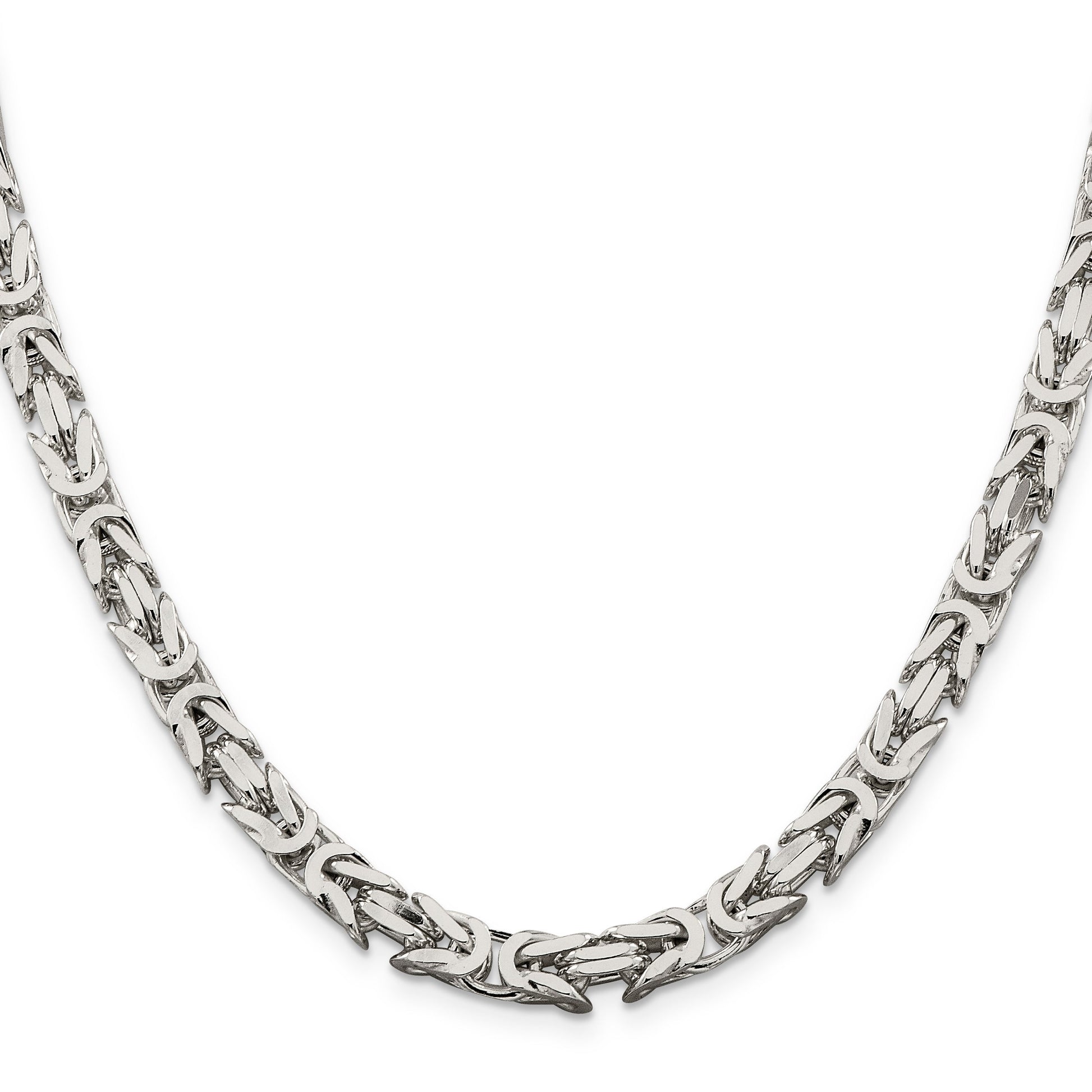 The 28 Inch Sterling Silver 6mm Byzantine Chain is a striking piece of craftsmanship. Made with 925 sterling silver, this chain has a polished finish that beams with elegance. It has a length of 28 inches and a width of 6mm, offering both durability and style. The Byzantine chain style adds a unique and intricate design, perfect for any occasion. Featuring a secure lobster clasp, it's both practical and chic. Whether dressing up or down, this unisex necklace suits every style. Enhance your collection with the 28 Inch Sterling Silver 6mm Byzantine Chain today.