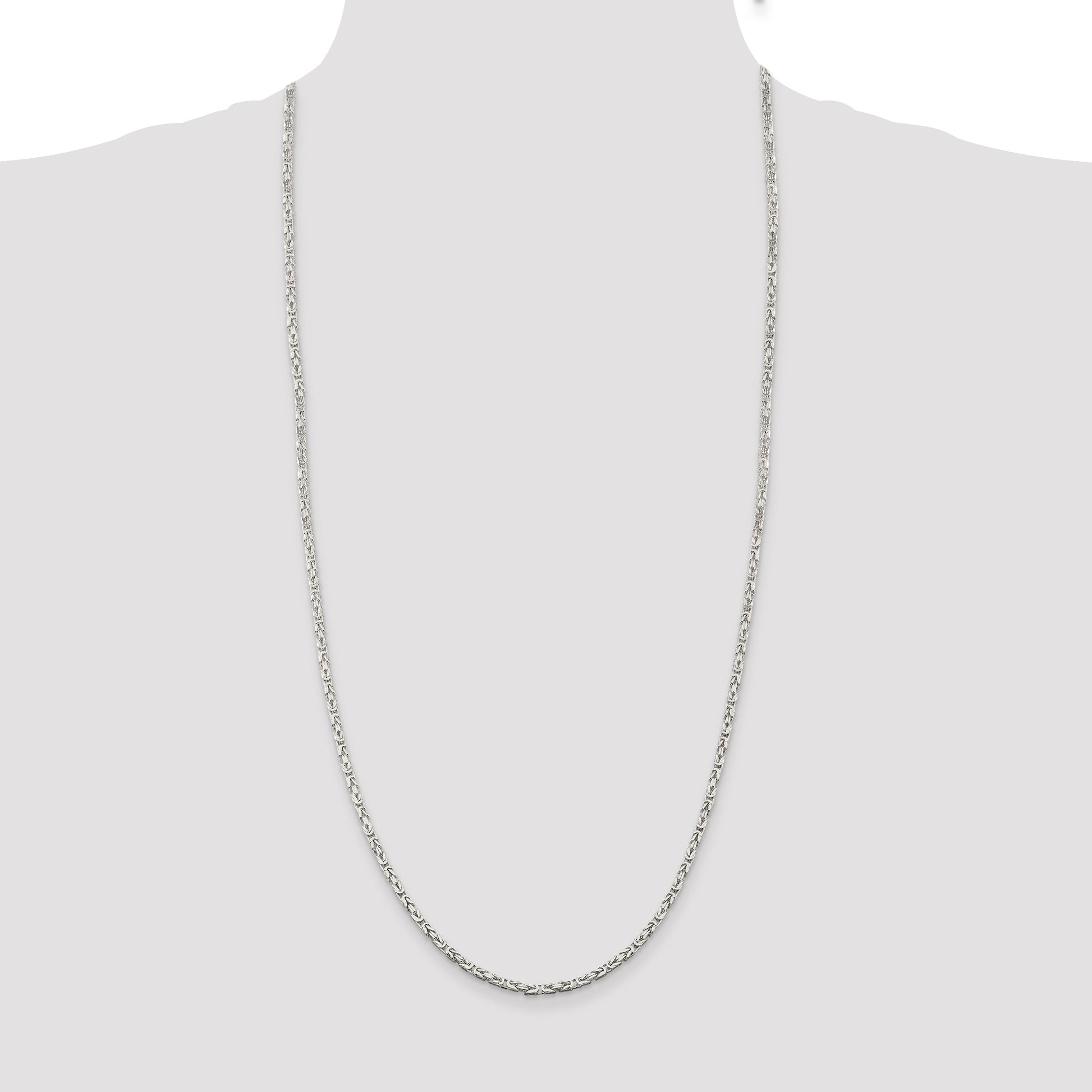 The 30 Inch Sterling Silver 2.5mm Byzantine Chain is a stunning piece of jewelry that exudes timeless elegance. Crafted from high-quality 925 sterling silver, this necklace features a polished finish that enhances its gleaming white color. The intricate Byzantine design showcases expert craftsmanship, making it a standout addition to any jewelry collection. A lobster clasp ensures a secure fit, while the solid, machine-made construction promises durability. With its 2.5mm width and 30-inch length, this chain is a perfect accessory for any outfit. Elevate your style with the 30 Inch Sterling Silver 2.5mm Byzantine Chain today.