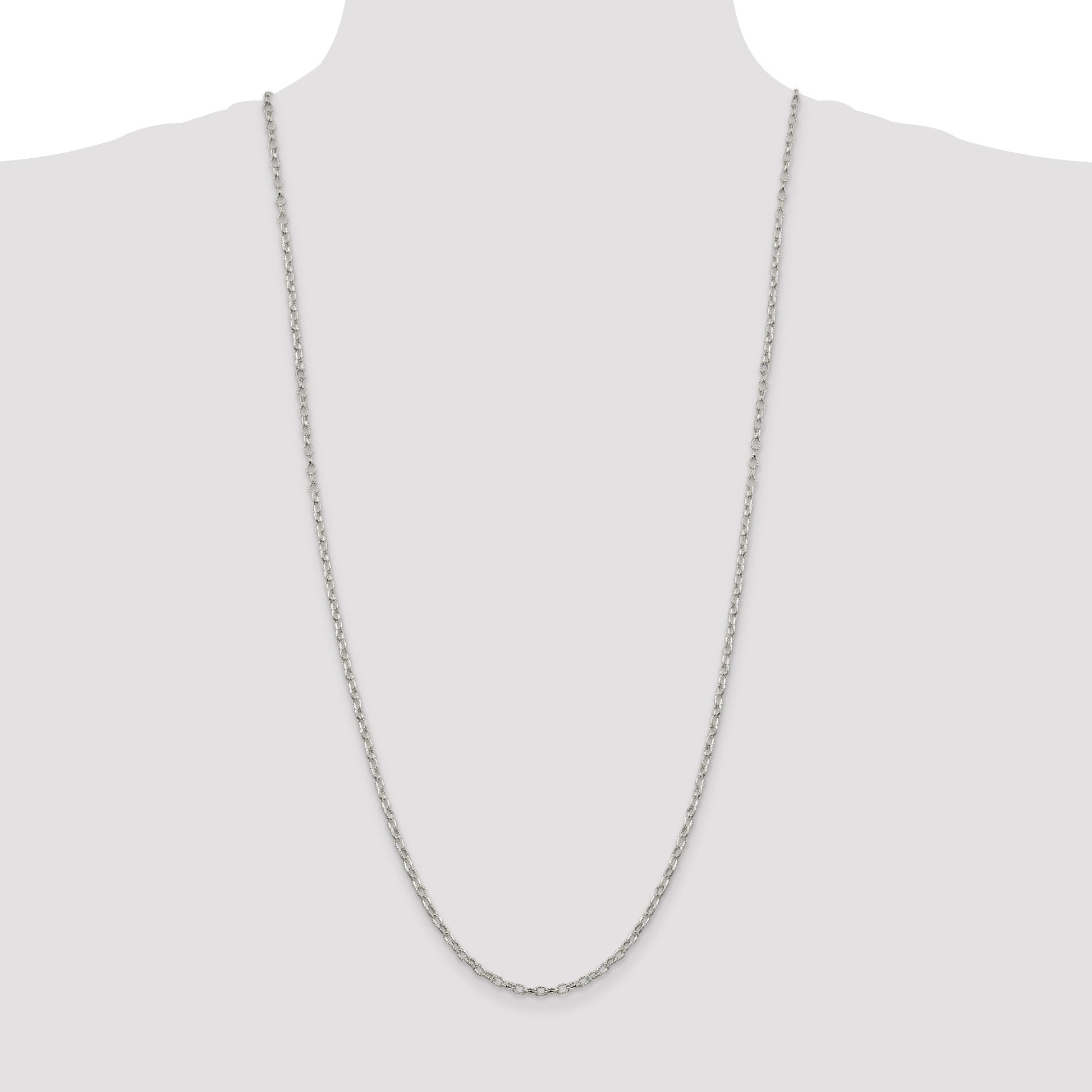 The 30 Inch Sterling Silver 3mm Fancy Patterned Rolo Chain is a stunning addition to any jewelry collection. Crafted from high-quality 925 sterling silver, this polished chain glistens with a unique charm. Its 30-inch length drapes gracefully, while the 3mm width provides a balanced look. The intricate textured design enhances its elegance, making it perfect for everyday wear or special occasions. The robust lobster clasp ensures secure fastening. Handcrafted with care, it features anti-tarnish coating to maintain its bright, white sheen. Indulge in the timeless beauty of this 30 Inch Sterling Silver 3mm Fancy Patterned Rolo Chain.