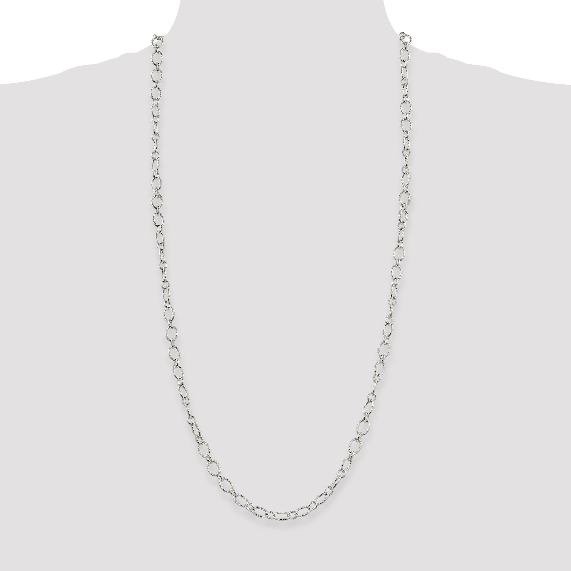 Introducing the 30 Inch Sterling Silver 6.1mm Fancy Patterned Rolo Chain, a piece that combines timeless elegance with modern design. Crafted from 925 sterling silver, the chain boasts a polished finish that enhances its bright, white glow. Handmade with care, the rolo pattern is both sophisticated and durable, perfect for daily wear. At 6.1mm wide, this chain stands out without overwhelming, and the lobster clasp ensures a secure fit. This fancy accessory blends well with pendants yet makes a statement alone. Elevate your jewelry collection with the 30 Inch Sterling Silver Fancy Patterned Rolo Chain today.