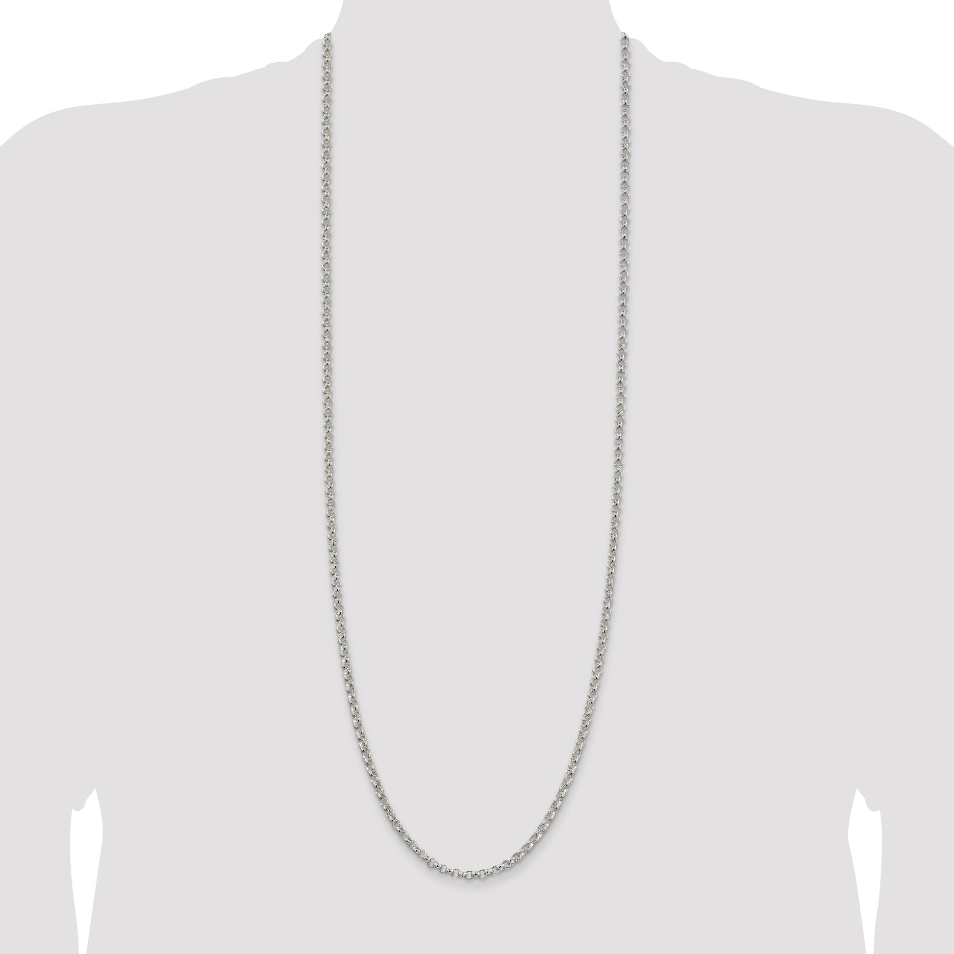The 36-inch Sterling Silver 4mm Rolo Chain is a timeless piece of jewelry crafted for those who appreciate elegance and style. Made from genuine 925 sterling silver, this necklace dazzles with its polished finish, ensuring a lasting shine. The rolo design, with each link meticulously machine-made, offers a robust and sturdy feel. The 4mm width adds a bold statement, while the lobster clasp ensures secure wear. Designed with an anti-tarnish coating, this chain guarantees long-lasting beauty. Perfect for women who love versatile and sophisticated accessories, the 36-inch Sterling Silver 4mm Rolo Chain is a must-have in any jewelry collection.