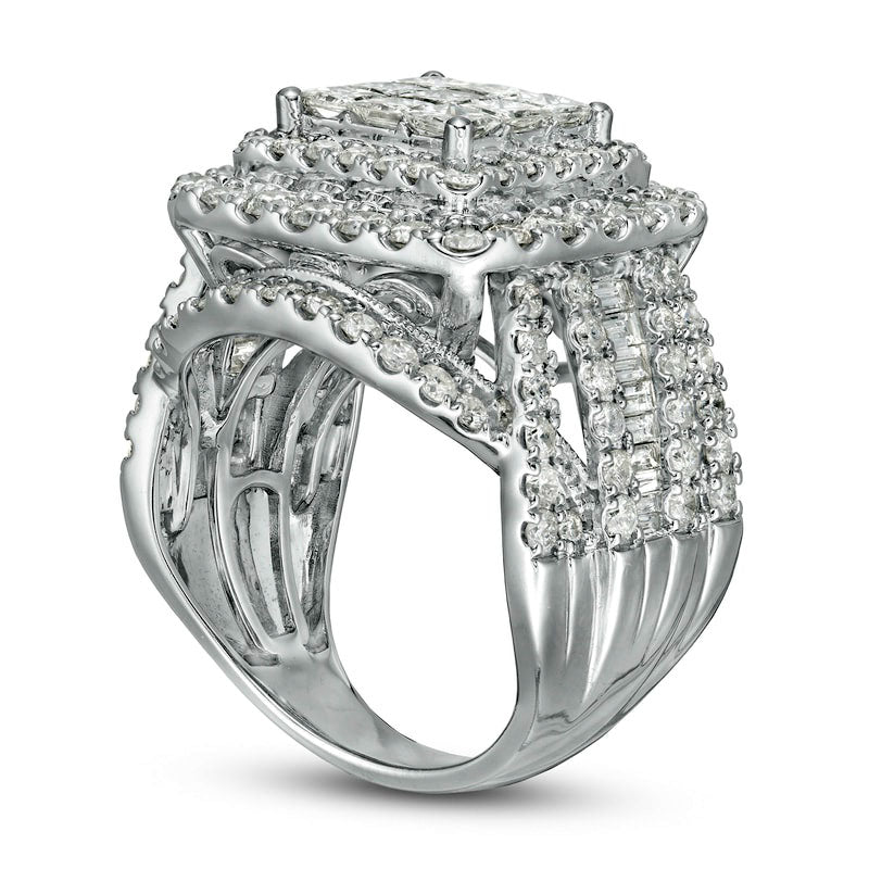 4 CT. T.W. Princess-Cut Composite Natural Diamond Multi-Row Split Shank Engagement Ring in Solid 10K White Gold