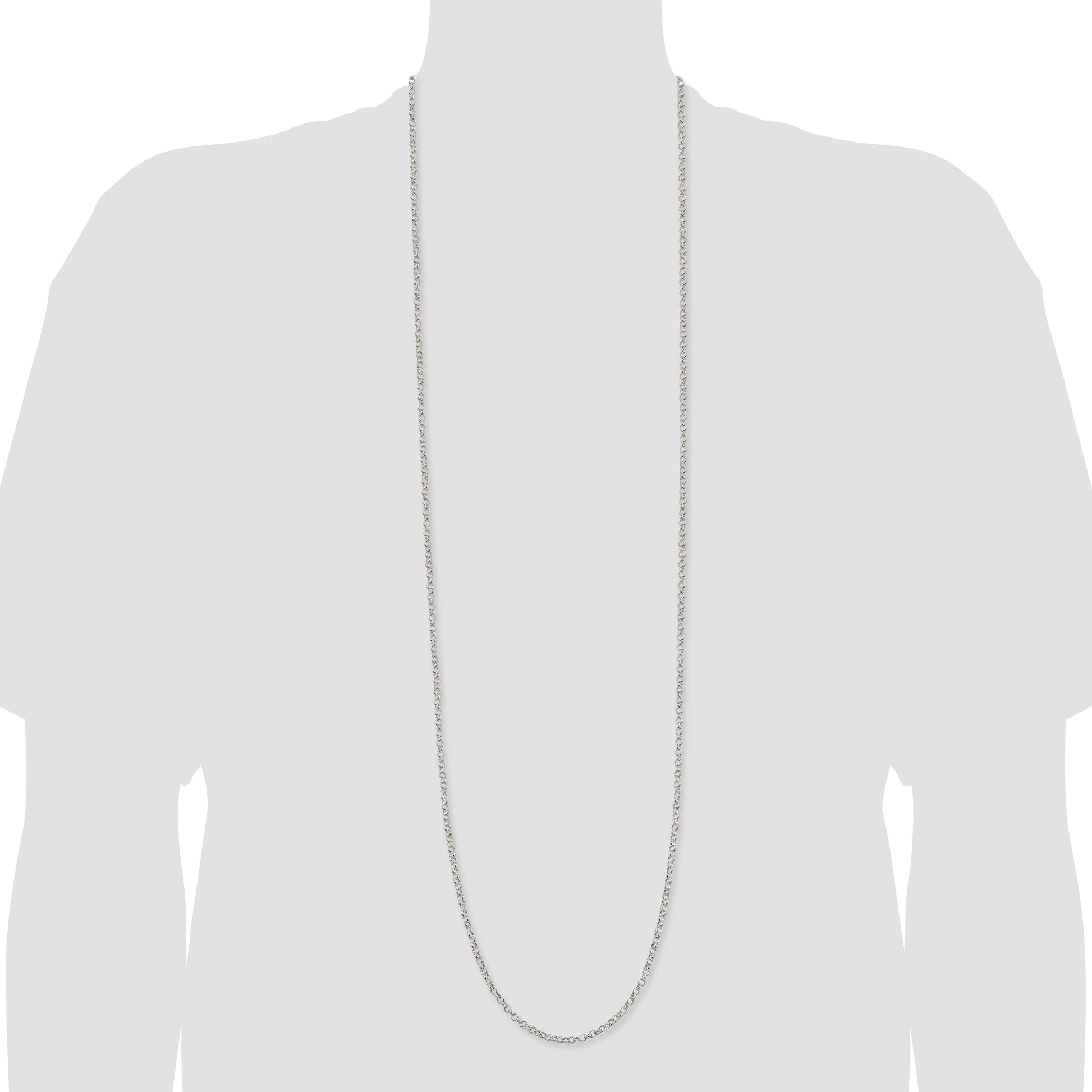 The 42 Inch Sterling Silver 4mm Rolo Chain elevates any outfit with its classic shine and elegance. Crafted from 925 sterling silver, this chain boasts a polished finish that gleams in any light. Measuring 42 inches in length and featuring a 4mm width, it drapes gracefully, offering a versatile styling choice. Its solid construction ensures durability, while the lobster clasp provides secure closure. Designed for women, this rolo chain complements both casual and formal looks. Own this timeless jewelry piece for a touch of sophistication. Rediscover accessorizing with the 42 Inch Sterling Silver 4mm Rolo Chain.